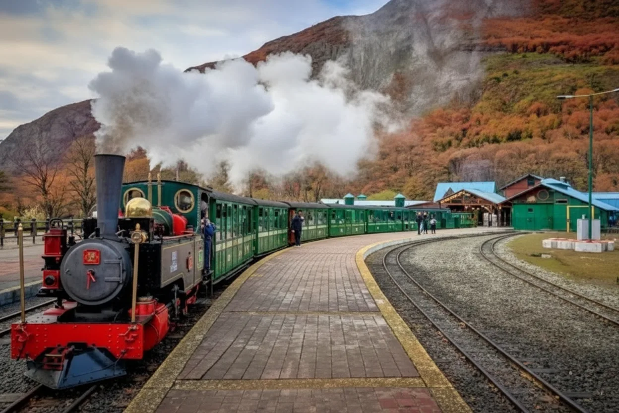 • 🚉 Board the heritage train at the primary Tren del Fin del Mundo Station 📍