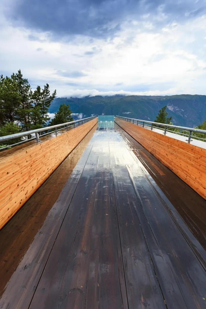 • 🏗️ Experience the dramatic platform 🌉 that hangs high above the valley 🦅