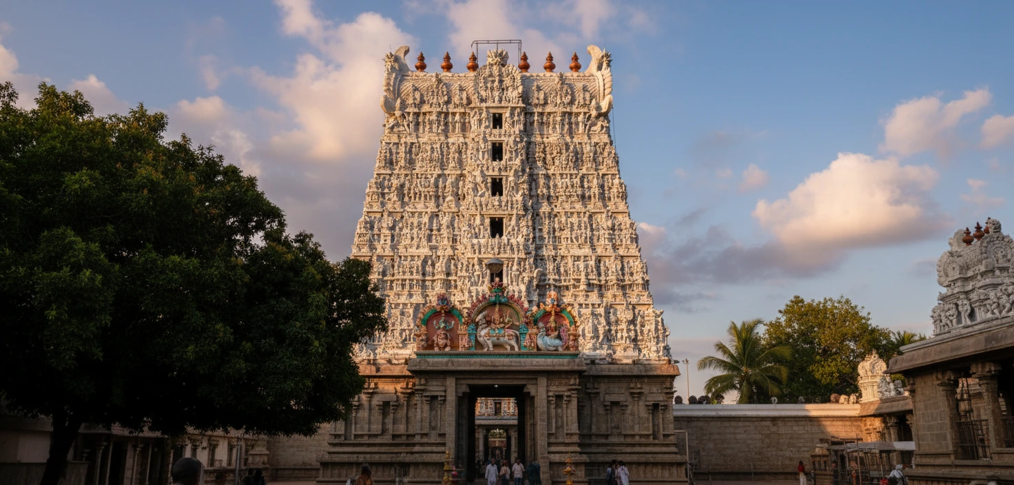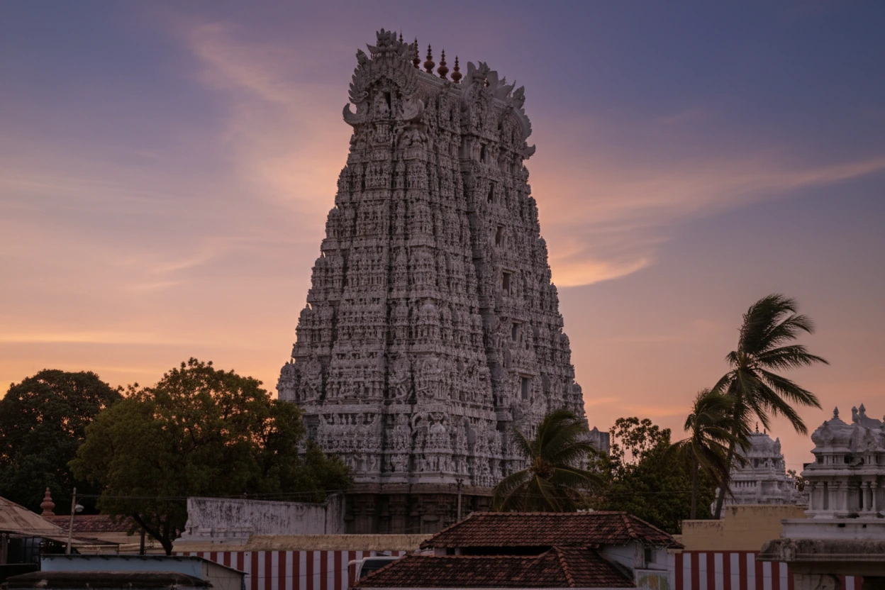• 🏯 View the tall gopuram and the incredibly intricate stone carvings 🗿.