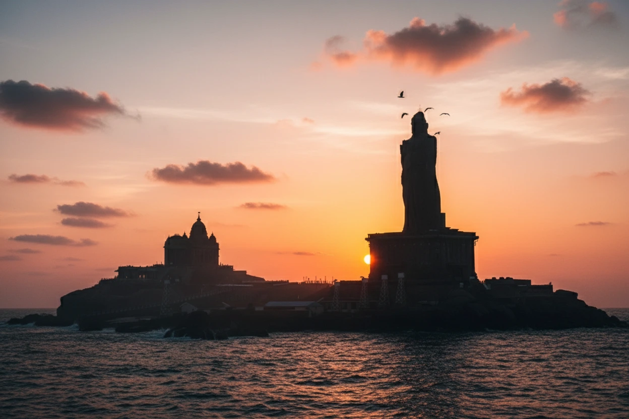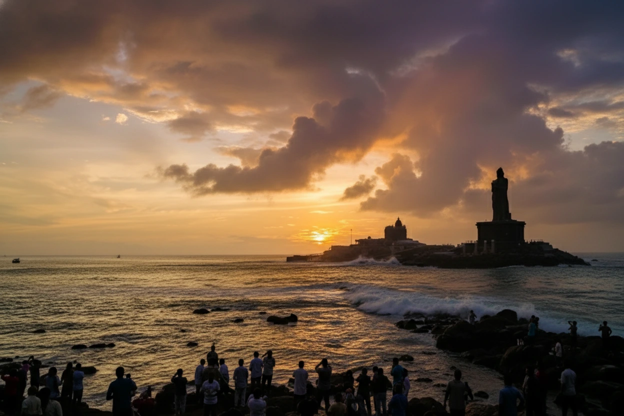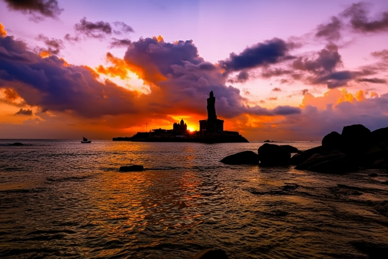 • 🌅 Experience the famous and breathtaking Kanyakumari sunrise 🌊.