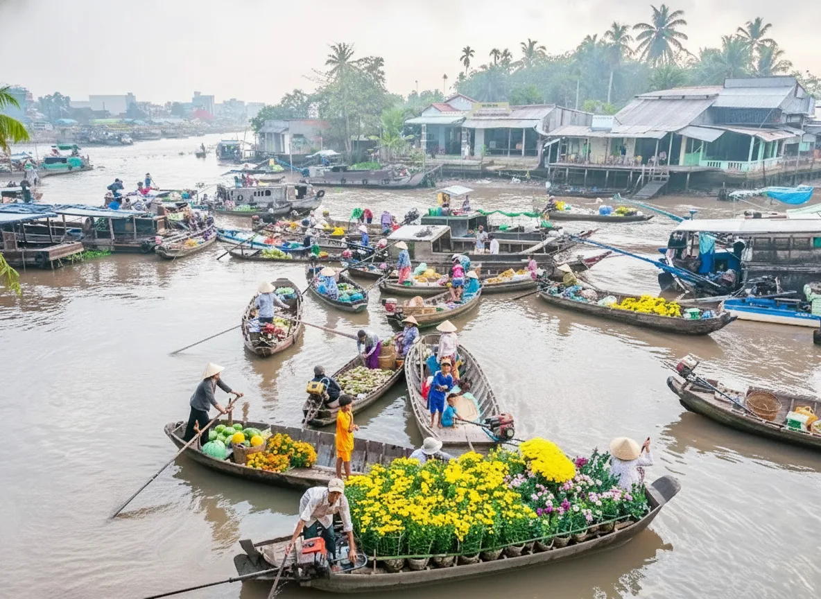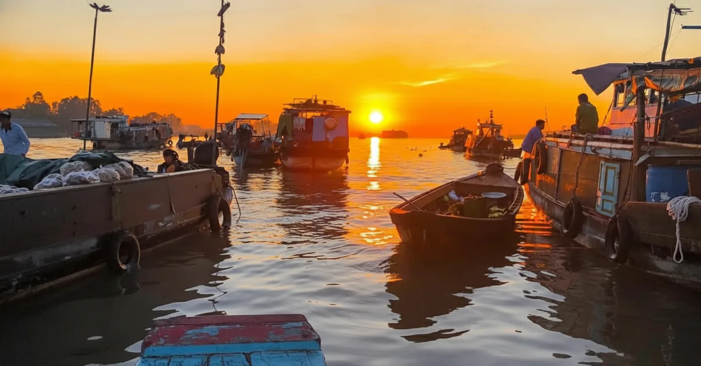 Sunset along the river near Cái Răng offers a calm and scenic end to the day in the Mekong Delta. As the sun lowers, warm colors reflect across the water, boats return to shore, and river activity slowly quiets. For travelers, spending time by the river at sunset provides a peaceful moment to observe the changing light and atmosphere. The combination of soft colors, gentle movement, and open river views creates a memorable evening experience.