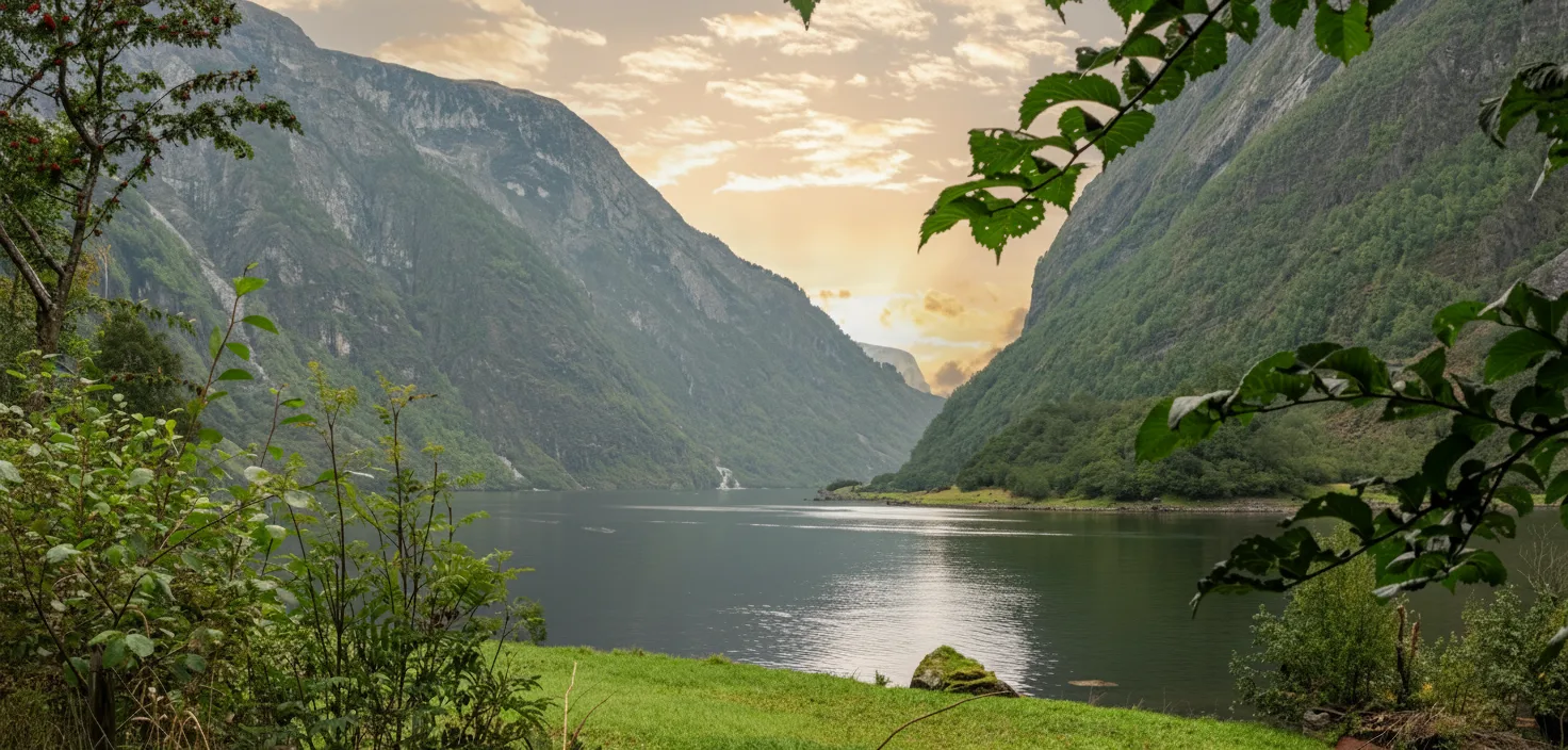 Sunset fjord lookouts in the Sognefjord region offer peaceful locations to watch the evening light reflect across calm water and surrounding mountains. As the sun lowers, the fjord landscape changes color, creating a calm and memorable atmosphere. Visiting these lookouts in the evening allows travelers to experience the fjord at its most tranquil moment. Soft light, long shadows, and quiet surroundings make sunset one of the best times to enjoy the region’s natural beauty.