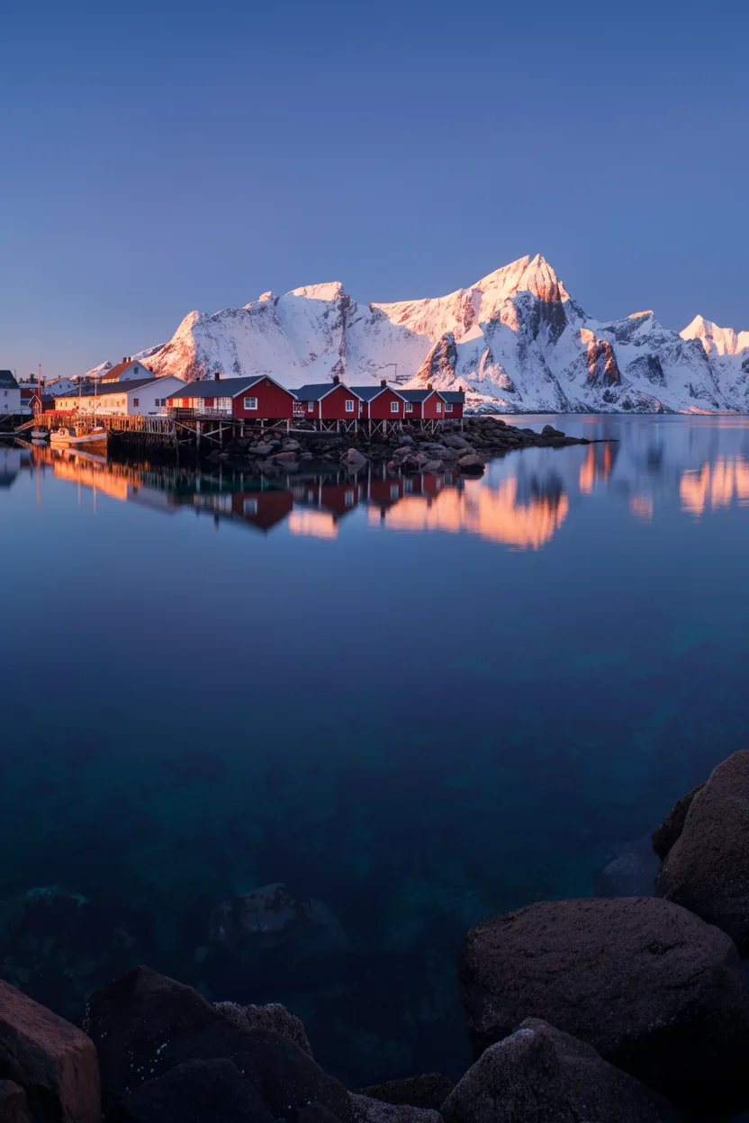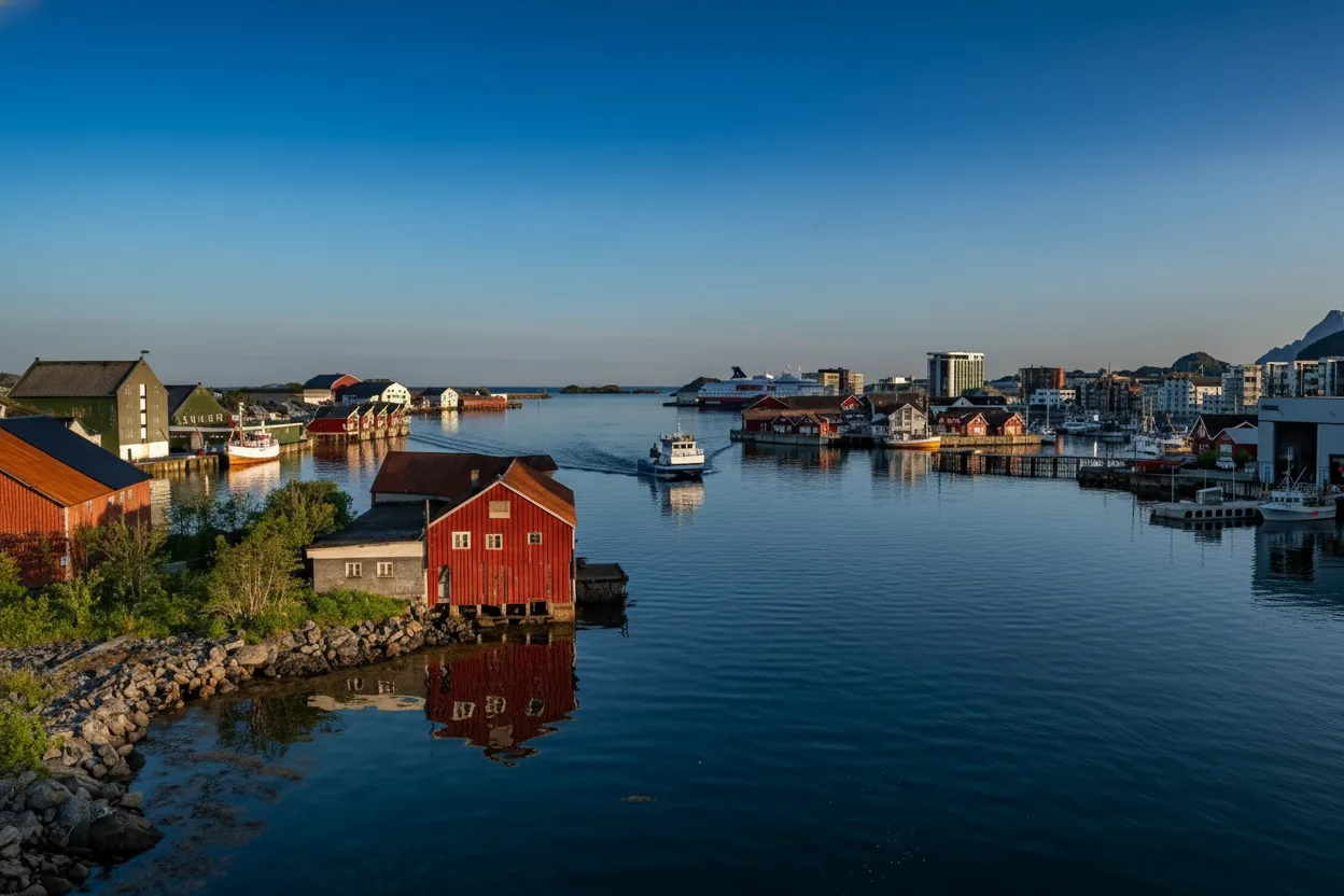 Sunset Harbor Lookouts around Svolvær provide some of the most beautiful evening views in the Lofoten Islands. As the sun lowers over the Arctic horizon, the harbor waters reflect warm colors while fishing boats and mountains create dramatic silhouettes. These quiet lookout spots are popular for relaxing walks, photography, and watching the peaceful transition from daylight to evening.