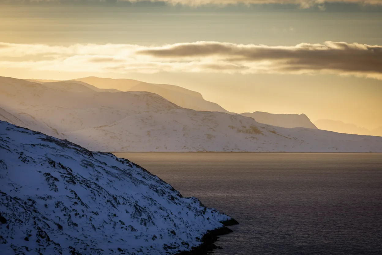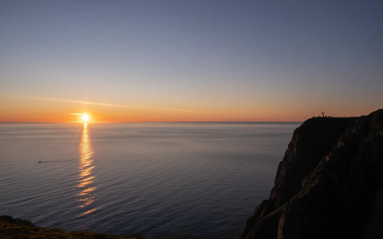 Sunset lookouts at Nordkapp provide calm and atmospheric locations to watch the Arctic sky change colors. During clear evenings, soft light reflects across the ocean and tundra, creating peaceful scenery. Although the sun behaves differently in the far north, these lookout points still offer memorable evening light outside the Midnight Sun season. For travelers, sunset lookouts are ideal places to slow down and reflect after exploring the plateau.