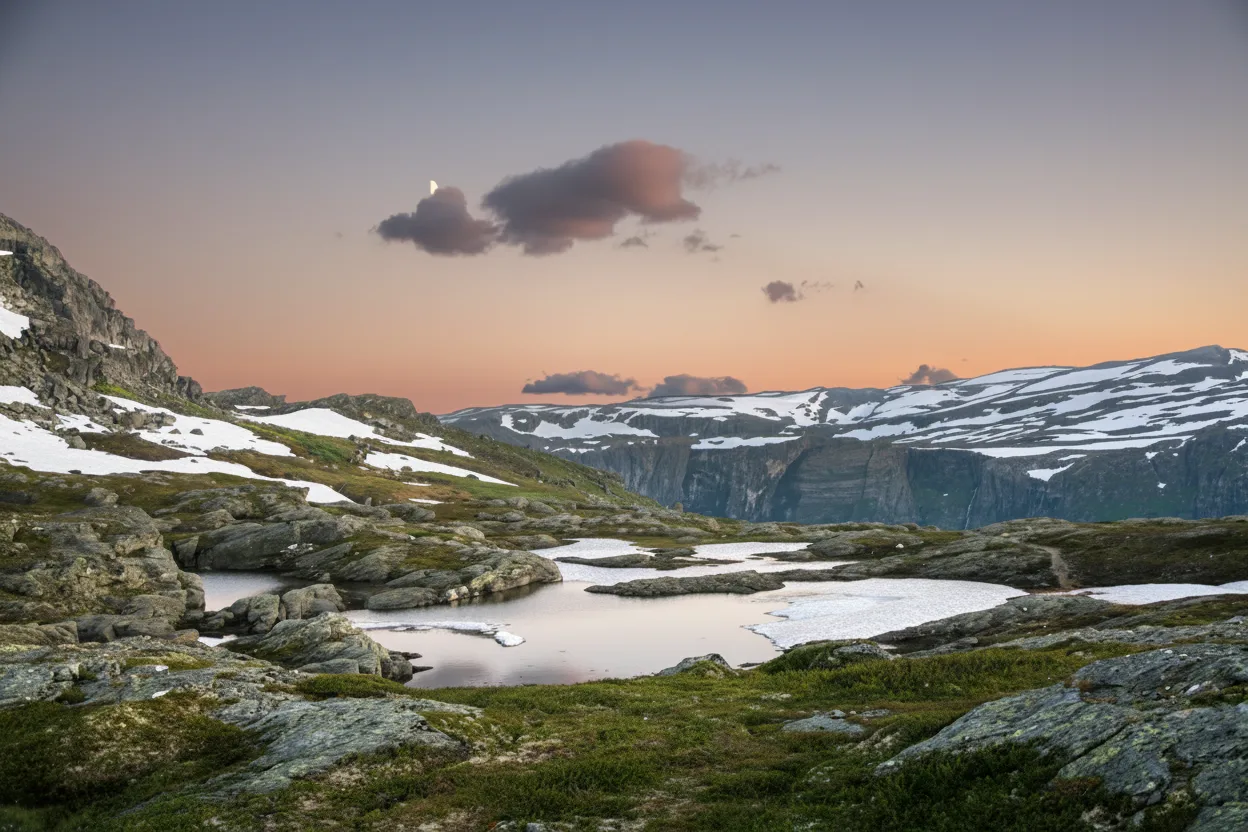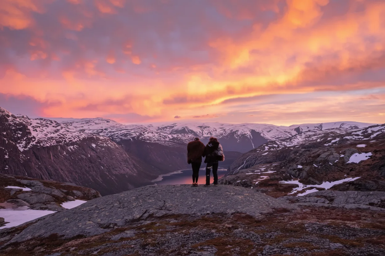 Sunset mountain lookouts near Odda offer calm and memorable views as evening light slowly moves across rugged peaks and deep valleys. These viewpoints provide peaceful places to end a day of hiking and sightseeing in the Trolltunga region. As the sun lowers, the mountains take on warm tones and long shadows. The quiet atmosphere makes these lookouts ideal for photography, reflection, and enjoying Norway’s natural landscapes at a slower pace
