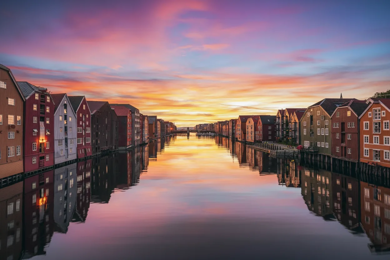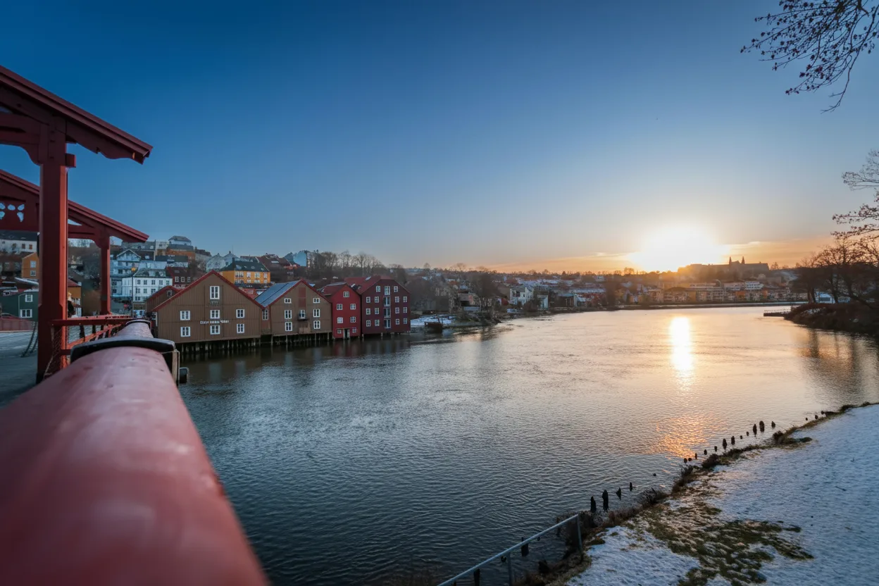 Sunset river lookouts along the Nidelva River offer peaceful places to enjoy evening light in Trondheim. These spots provide clear views of the river, bridges, and surrounding buildings. As the sun sets, the river reflects warm colors and creates a calm atmosphere. The area is popular for quiet walks and photography. For travelers, sunset river lookouts provide a relaxing way to end the day in Trondheim.