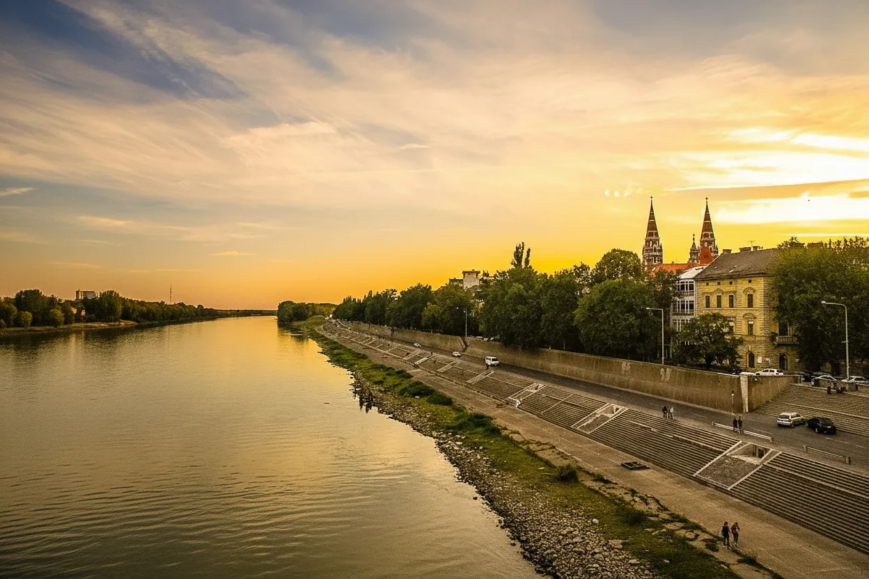 Sunset river viewpoints along the Tisza River offer some of the most beautiful evening scenery in Szeged, Hungary. As the sun sets, the sky reflects warm colors over the calm river surface. These peaceful spots attract photographers, couples, and travelers who want to relax while enjoying panoramic riverside views. The quiet atmosphere makes sunset one of the best times to visit. For visitors exploring Szeged, sunset viewpoints along the Tisza provide a memorable and scenic experience at the end of the day.