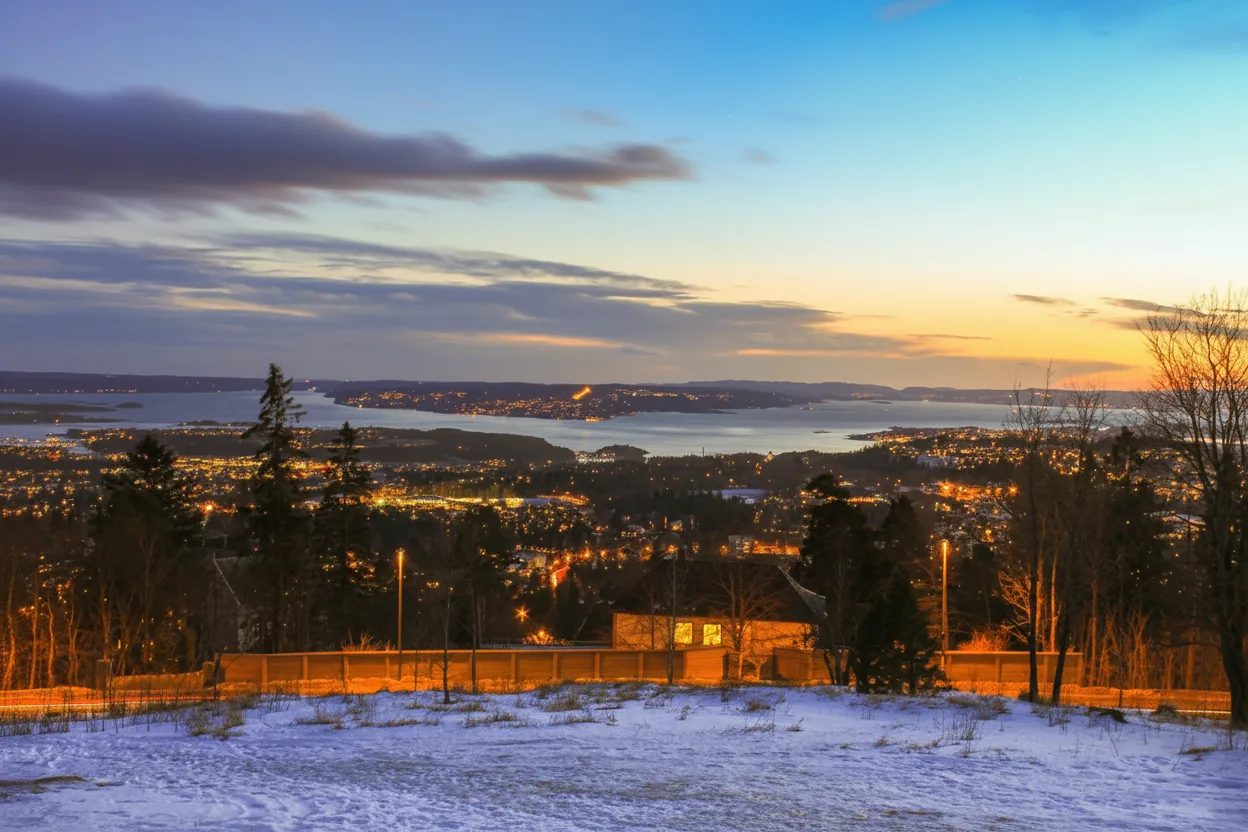 Sunset Viewing Points around Holmenkollen provide some of the most beautiful evening scenery in Oslo. Elevated landscapes, forest silhouettes, and the distant Oslofjord create a calm atmosphere perfect for photography and relaxation.