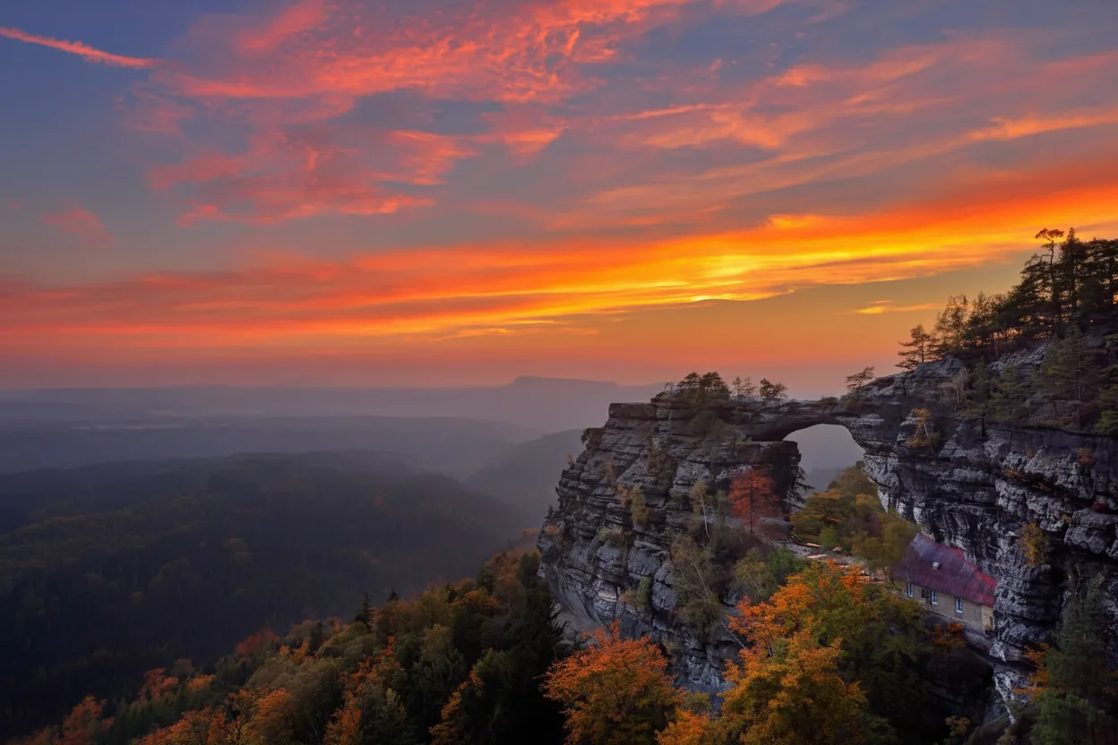 Sunset viewpoints in Bohemian Switzerland National Park offer peaceful locations to watch the landscape change as evening light moves across sandstone cliffs, forests, and valleys. The warm colours and long shadows create a calm and memorable atmosphere. Visiting these viewpoints near sunset allows travelers to enjoy quieter trails, softer light for photography, and wide views that highlight the natural shapes of the region. For travelers, sunset viewpoints provide a rewarding end to a day of hiking, offering moments of reflection and appreciation of Bohemian Switzerland’s natural beauty.