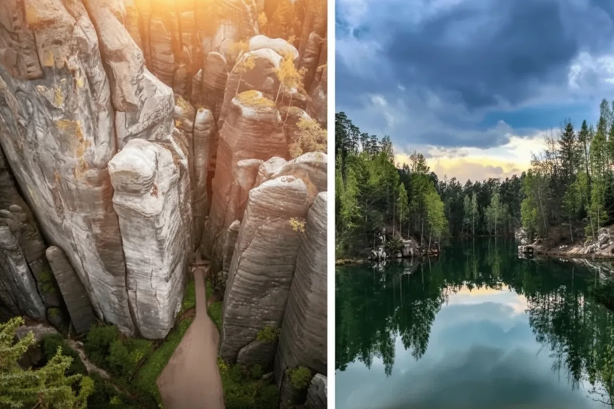 Sunset Viewpoints in Adršpach Rock City offer peaceful spots to watch the changing colors of the sandstone formations as daylight fades. Warm evening light highlights rock textures and creates long shadows. These viewpoints are usually located along elevated paths or open sections of the walking routes. As crowds thin later in the day, the atmosphere becomes calmer and more reflective. For travelers, sunset viewpoints provide a relaxing way to end a visit and experience the rock city in softer, quieter conditions.