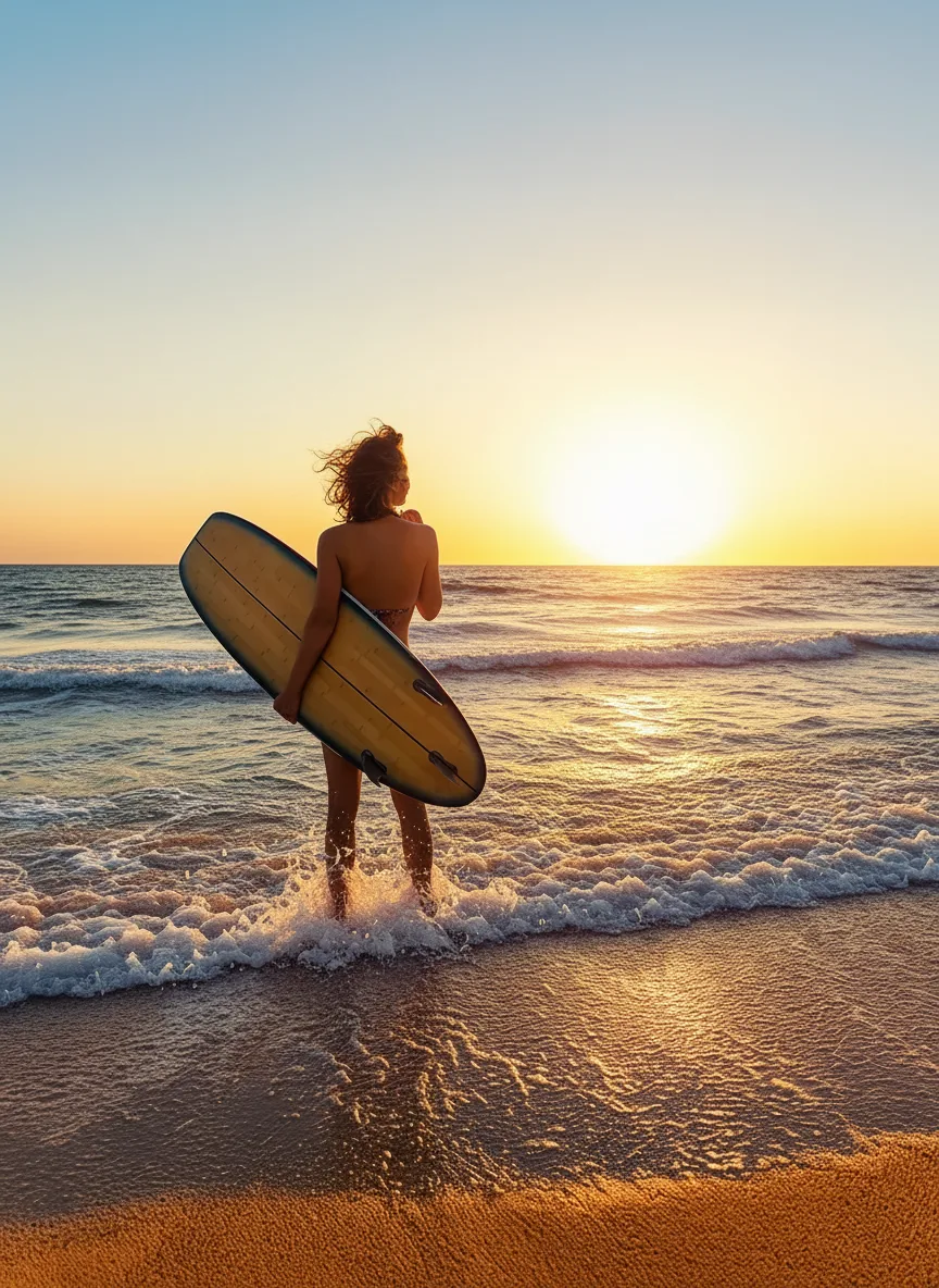 • 🏖️ 08:00 AM – Arrive at the surf-friendly beach area to check the swell 📍 🌅