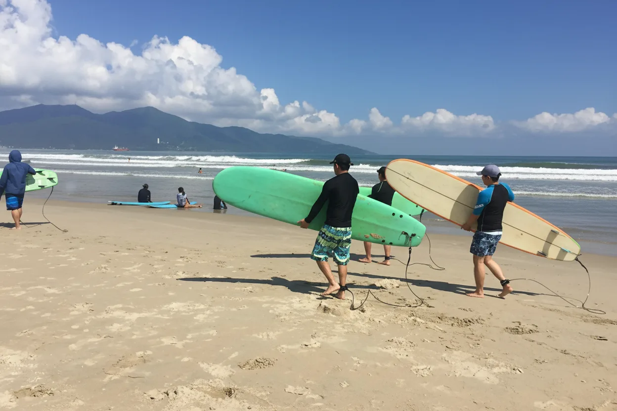 Surfing schools in Da Nang offer lessons and equipment rental for beginners and intermediate surfers. With gentle waves during most of the year and experienced local instructors, the coastline provides a safe and enjoyable environment for learning basic surfing skills while enjoying the ocean.