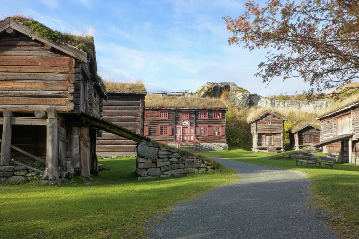 • 🏘️ Explore the beautifully preserved traditional wooden buildings 🪵 from various Norwegian eras 📜