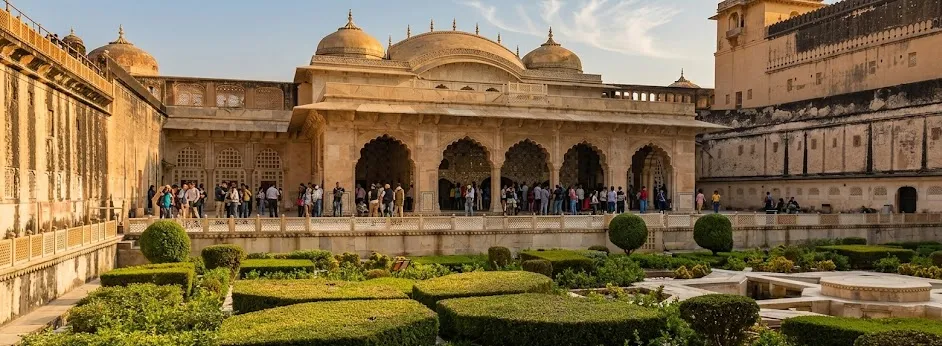 • 🌳 Walk through the Mughal-style gardens 🌷 and reflection pools 💧