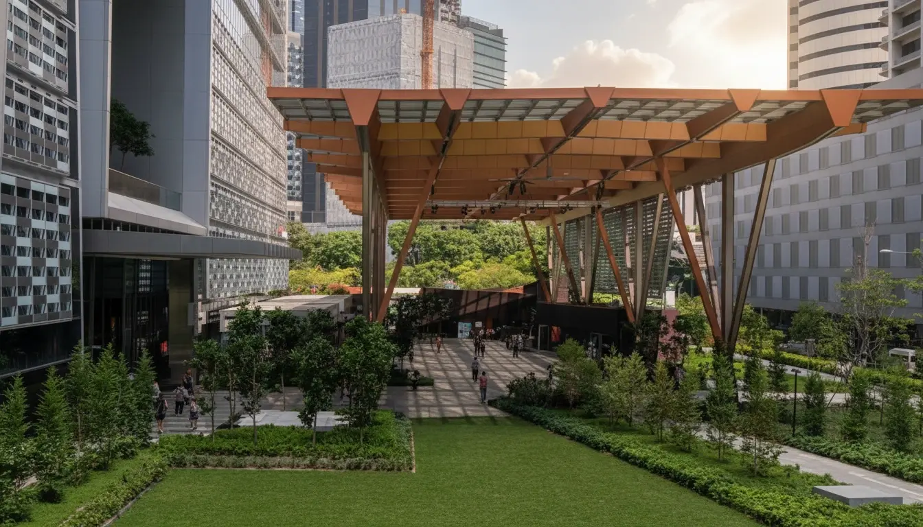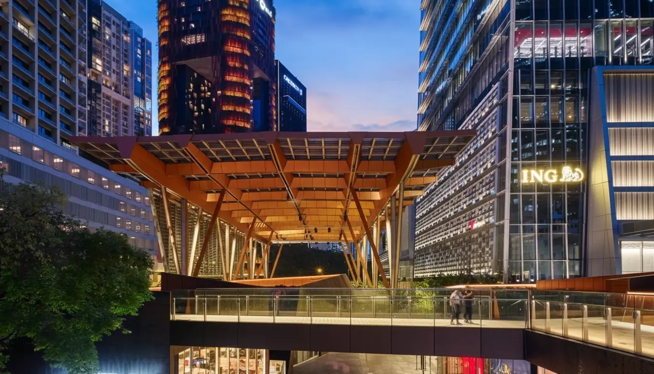 combines offices, luxury residences, retail spaces, and restaurants with scenic skyline