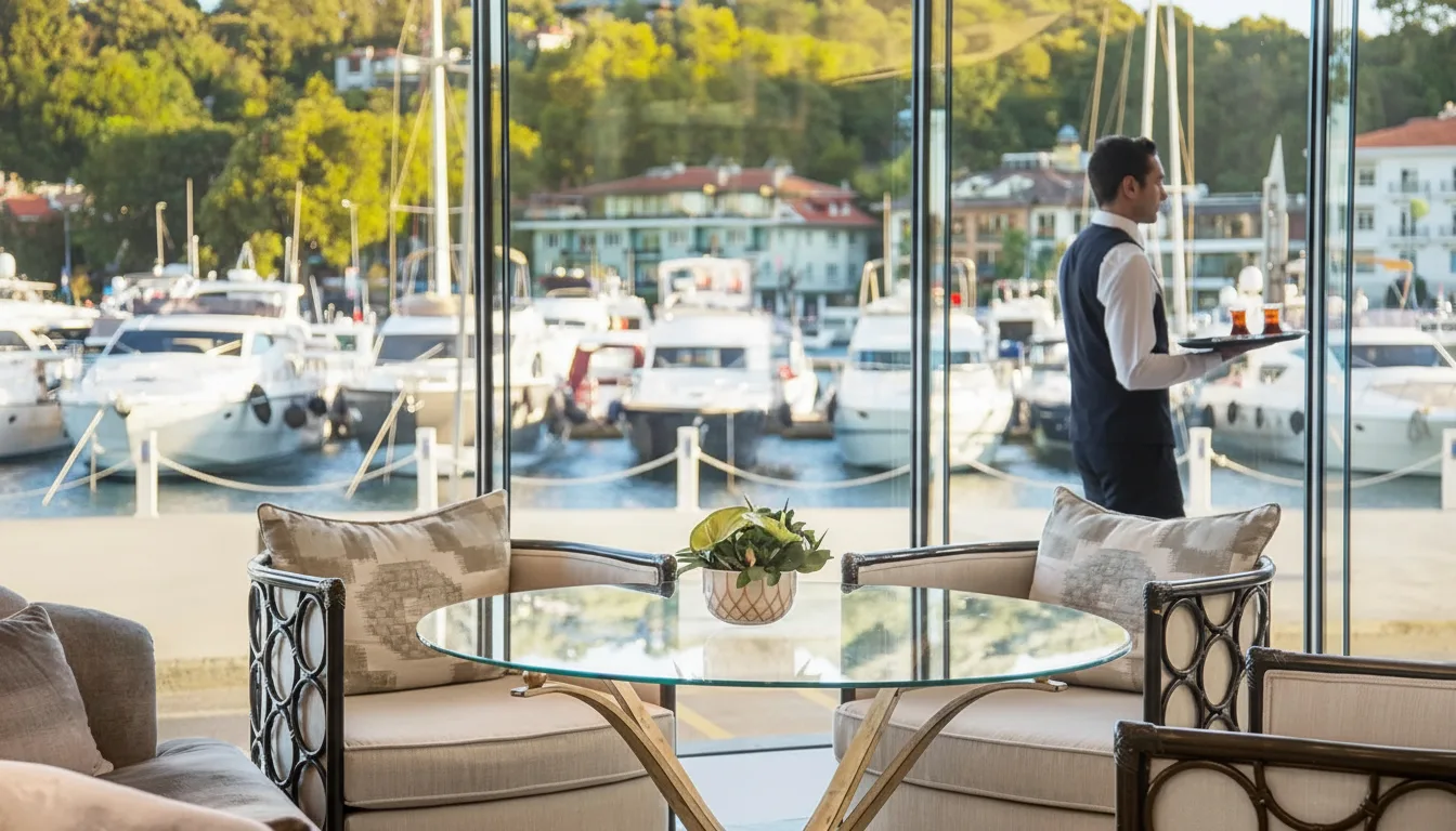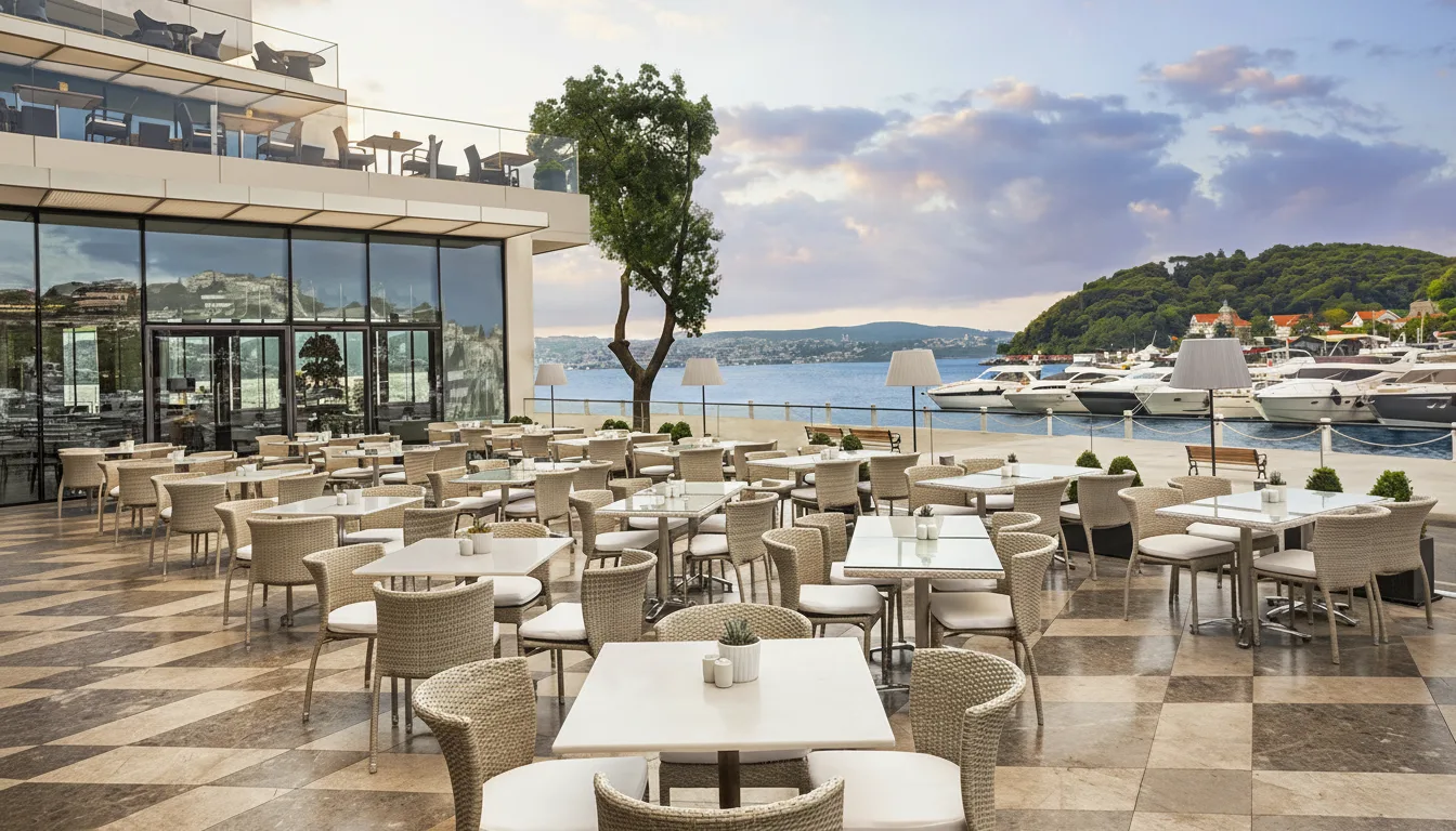 Tarabya Marina is a scenic harbor located on the European side of the Bosphorus in Istanbul. Surrounded by waterfront cafés, restaurants, and walking paths, it is a pleasant place to enjoy sea views and a relaxed atmosphere. The marina is popular for evening walks and dining by the water.