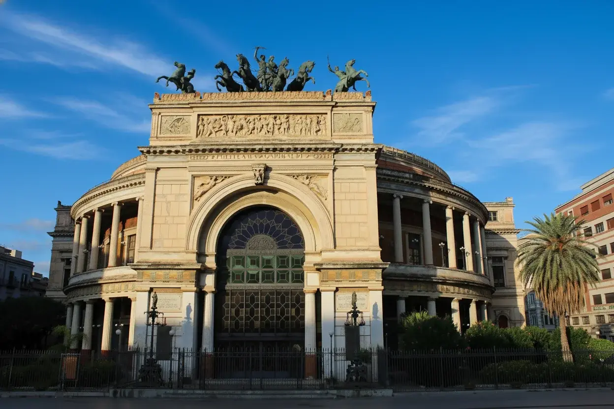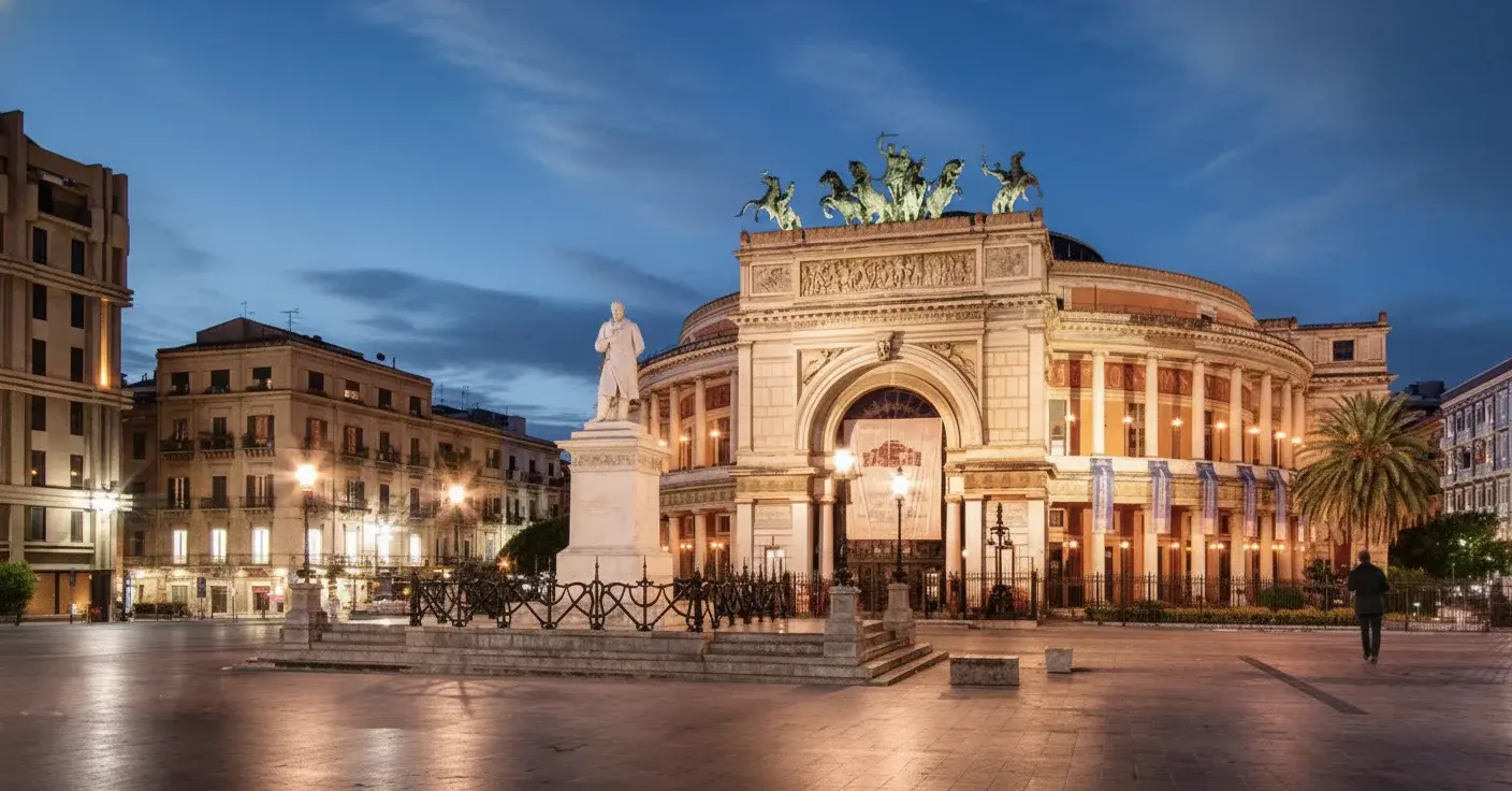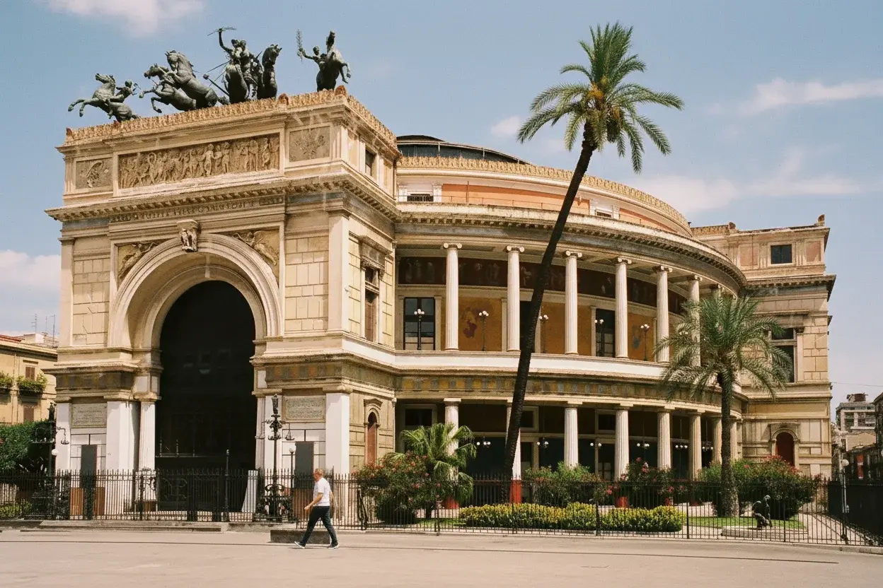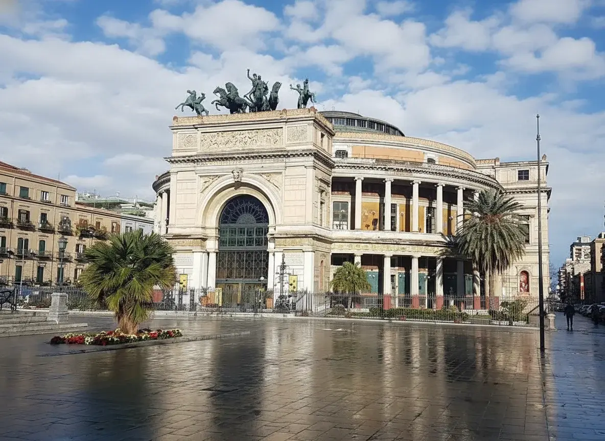 Teatro Politeama, officially known as Teatro Politeama Garibaldi, is one of Palermo’s most elegant theaters and a symbol of 19th-century Italian architecture. Built between 1867 and 1874, it stands proudly in Piazza Ruggero Settimo and complements the grandeur of Teatro Massimo nearby. With its impressive neoclassical façade and the bronze chariot statue crowning the entrance, Teatro Politeama remains a cultural hub for concerts, symphonies, and public events in Palermo.