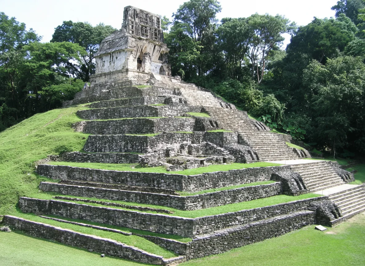 Palenque Archaeological Zone, Chiapas, Mexico. This temple highlights the artistic and