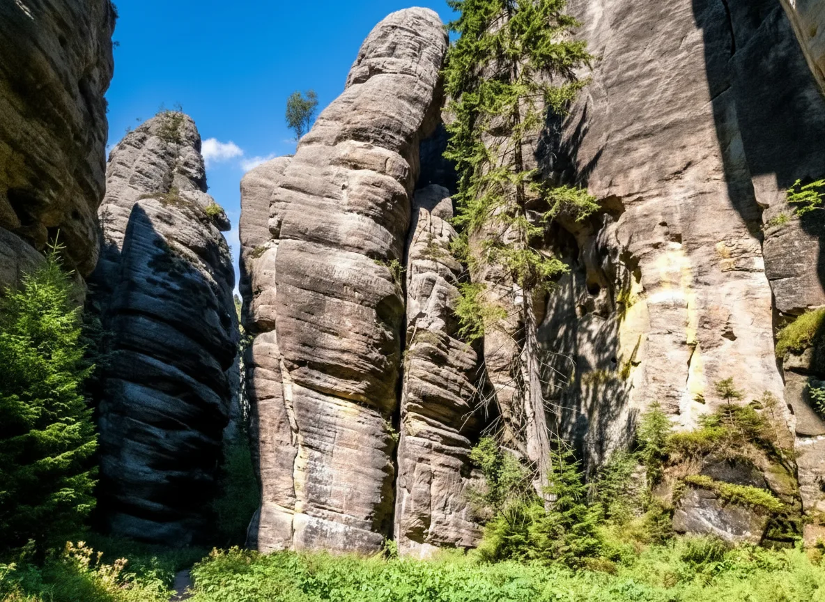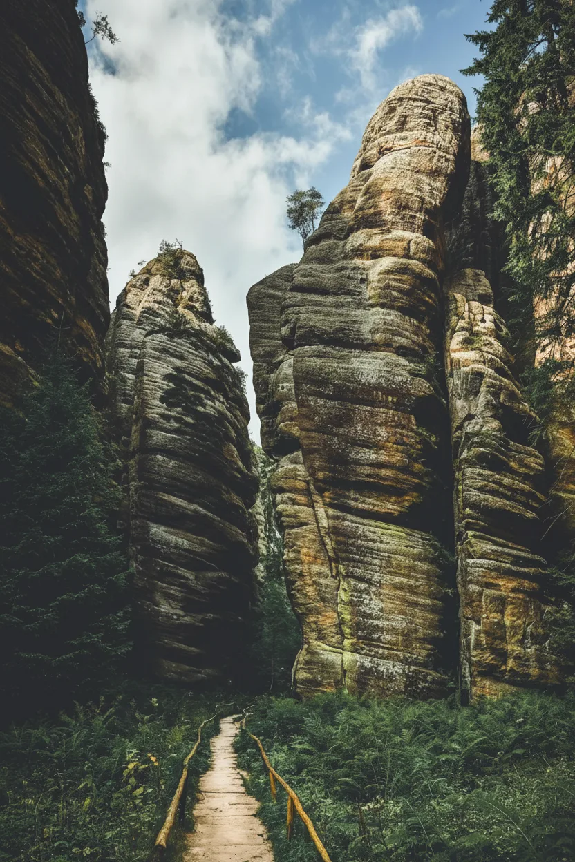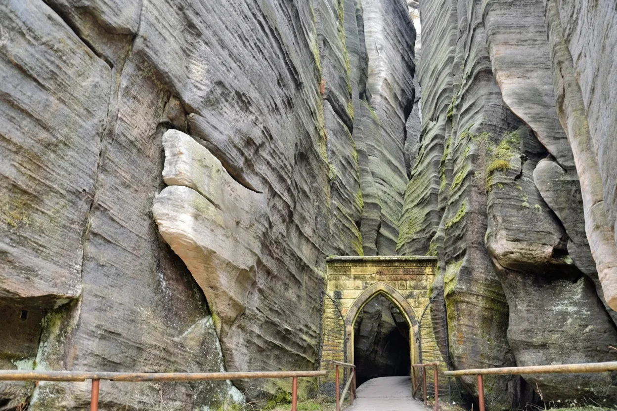 Teplice Rocks form an extensive sandstone rock maze connected to the Adršpach Rock City area. The landscape is quieter and more spacious, offering a slightly different experience from the main Adršpach formations. Tall rock towers, narrow passages, and forest sections create a natural labyrinth. Walking routes guide visitors through dramatic rock scenery and peaceful wooded areas. For travelers, Teplice Rocks provide a calmer and more immersive nature walk while still showcasing the impressive sandstone formations of the region.