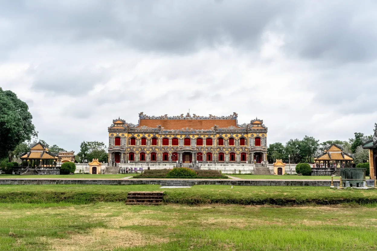 Thai Hoa Palace is one of the most important ceremonial buildings within the Imperial Citadel of Hue. This grand hall was used for major royal events, including coronations, official court meetings, and celebrations during the Nguyen Dynasty. For travelers, Thai Hoa Palace offers insight into the formal life of Vietnam’s emperors. The building’s symmetrical layout, decorative columns, and elevated throne area reflect the power and ritual significance of the imperial court.