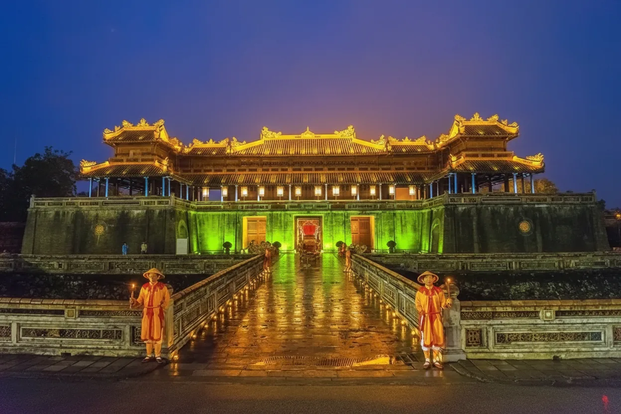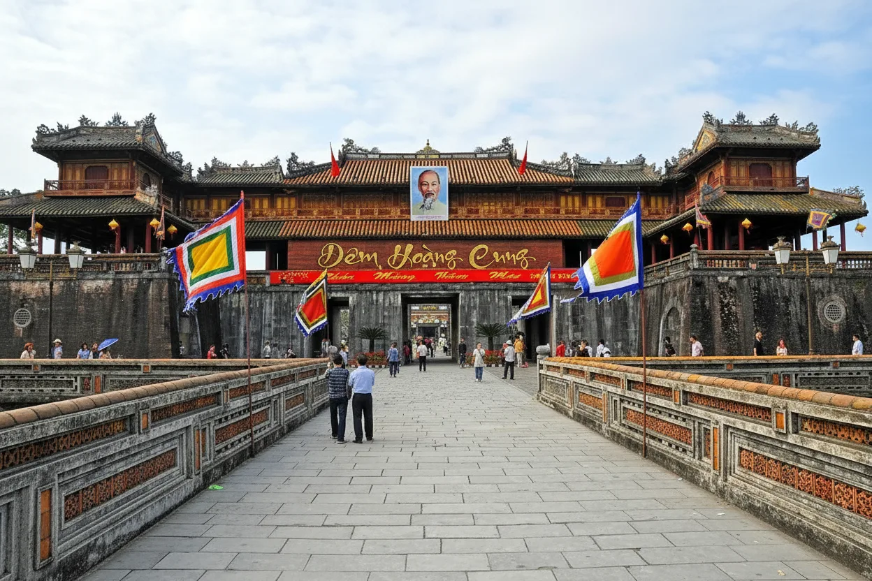 The Noon Gate is the main ceremonial entrance to the Huế Imperial City and one of the most recognizable structures of the royal complex. It was used for important royal events and official ceremonies. The gate features layered architecture, decorative details, and an elevated pavilion above the main entrance. From the upper level, emperors once addressed the public. For travelers, the Noon Gate provides a clear introduction to the scale and symbolism of the Imperial Citadel.