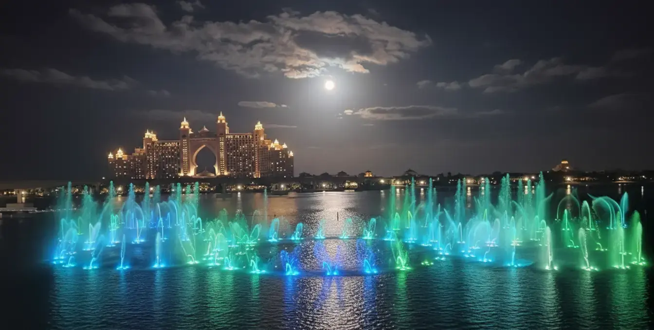• 8:00 PM – Fountain Show ⛲🎶: Watch The Palm Fountain show 🤩💡