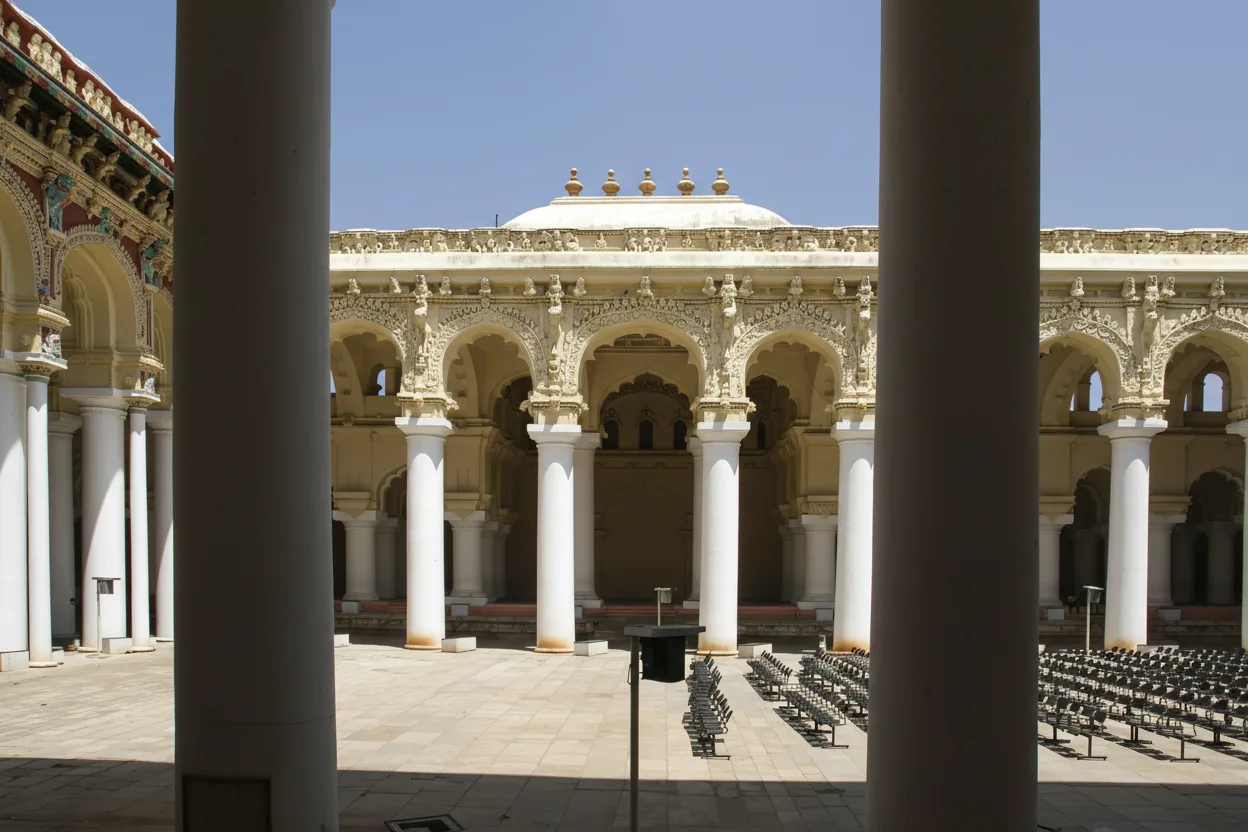 Thirumalai Nayakkar Palace is a magnificent 17th-century palace located in Madurai, Tamil Nadu. Built during the rule of King Thirumalai Nayak, the palace reflects a grand blend of Dravidian and Islamic architectural styles. The palace is known for its massive pillars, spacious courtyards, and impressive arches. Although only a part of the original structure remains, it still showcases the scale and elegance of Nayak-era royal architecture. For travelers, Thirumalai Nayakkar Palace offers a glimpse into Madurai’s royal history and architectural heritage