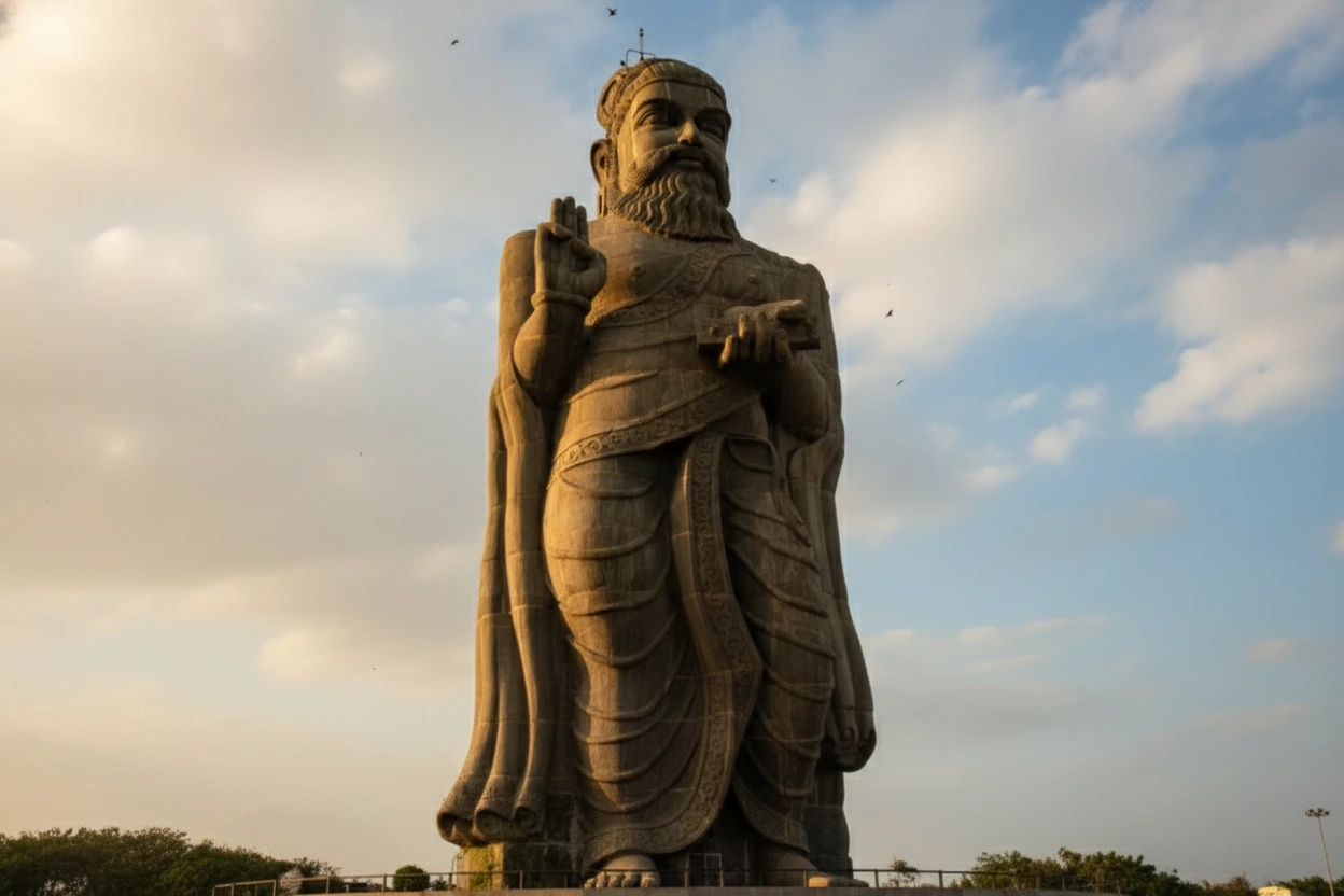 Thiruvalluvar. Standing at 133 feet tall, the statue symbolizes the 133 chapters