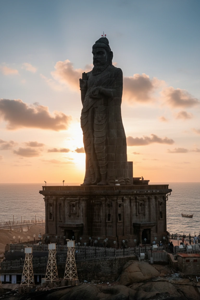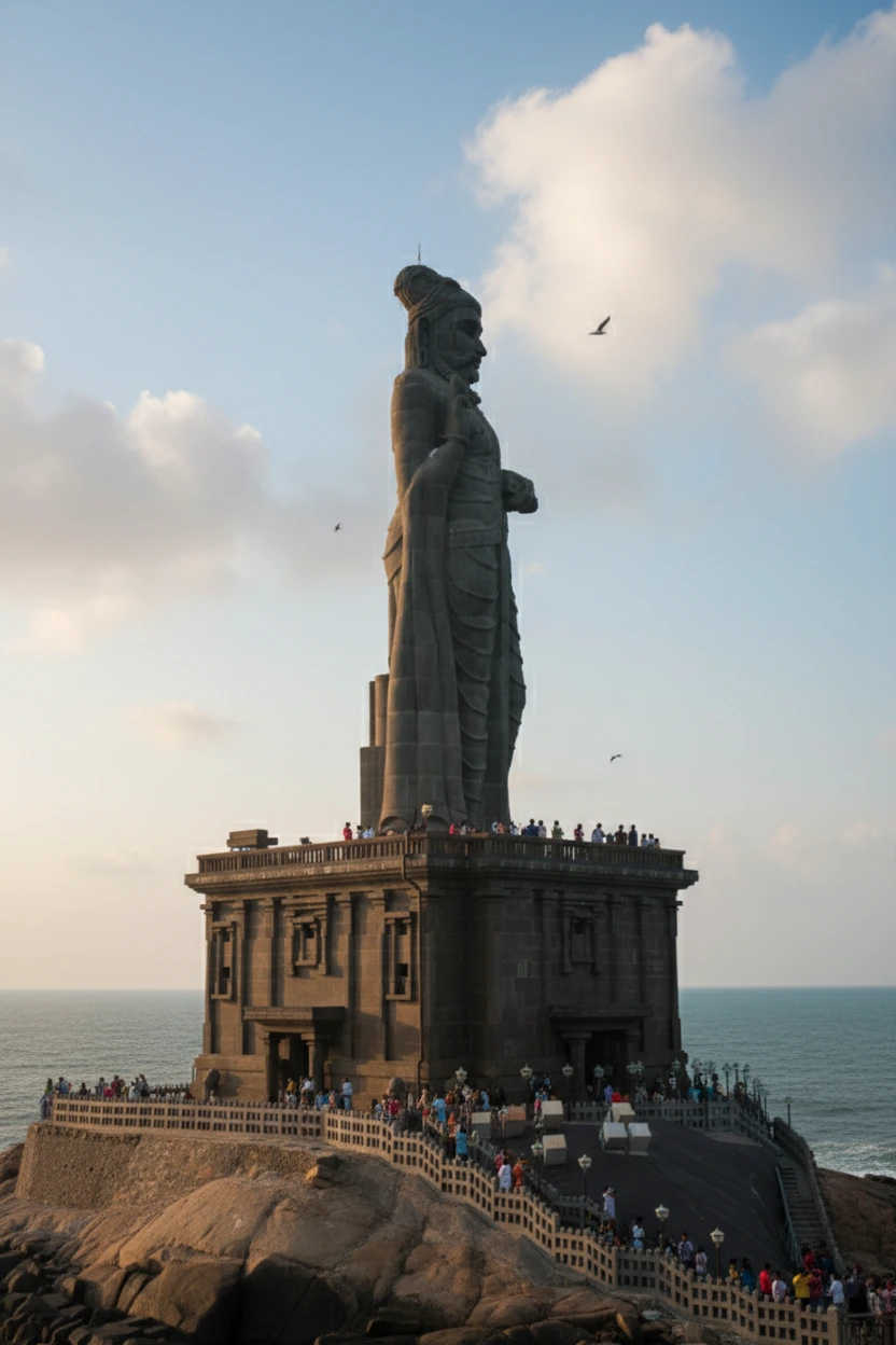 The Thiruvalluvar Statue, located on a small island near Kanyakumari, is a