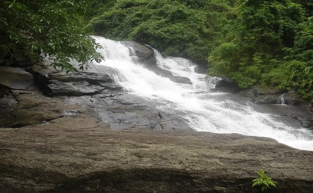 • Walk through the small forest path 🌳🚶‍♂️ leading to the falls 👣🌿