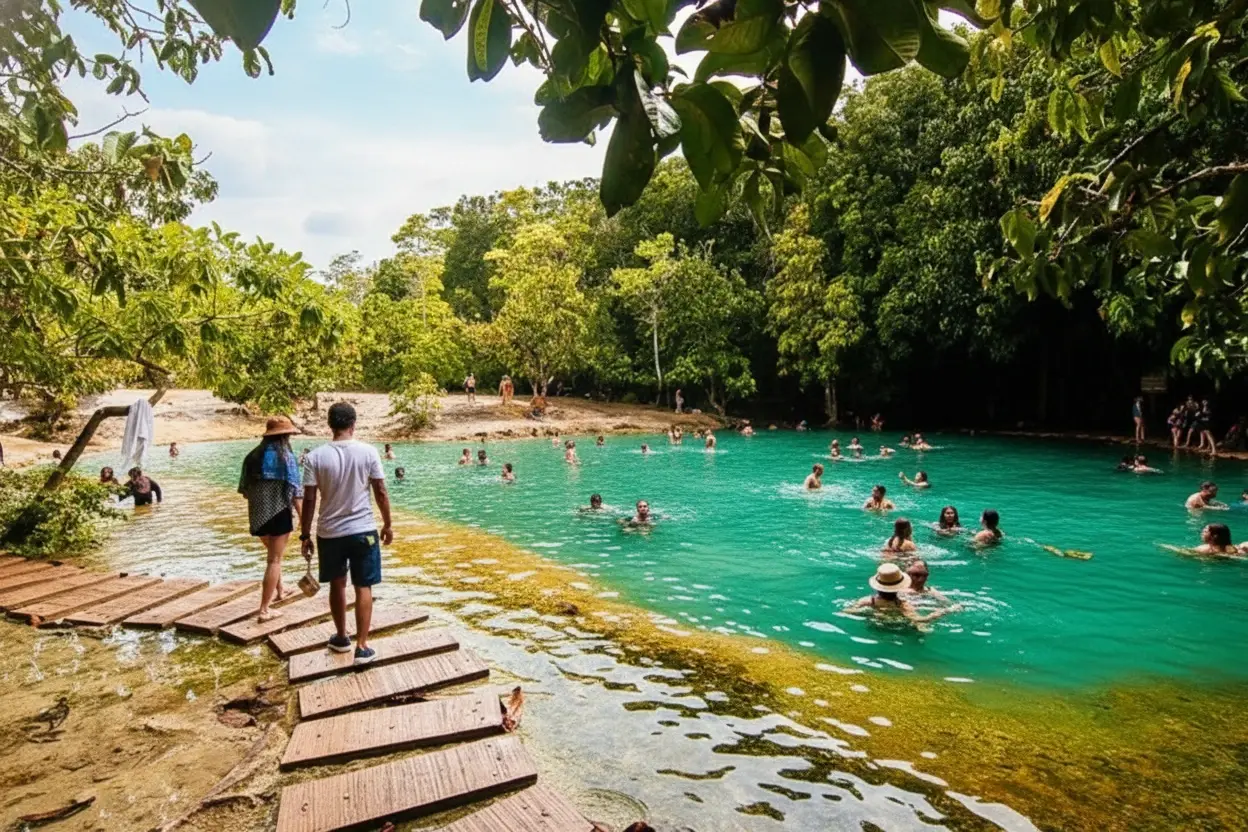 • 9:00 AM – Walk 🚶‍♂️ through rainforest trails 🌿 to the Emerald Pool 💚💧✨