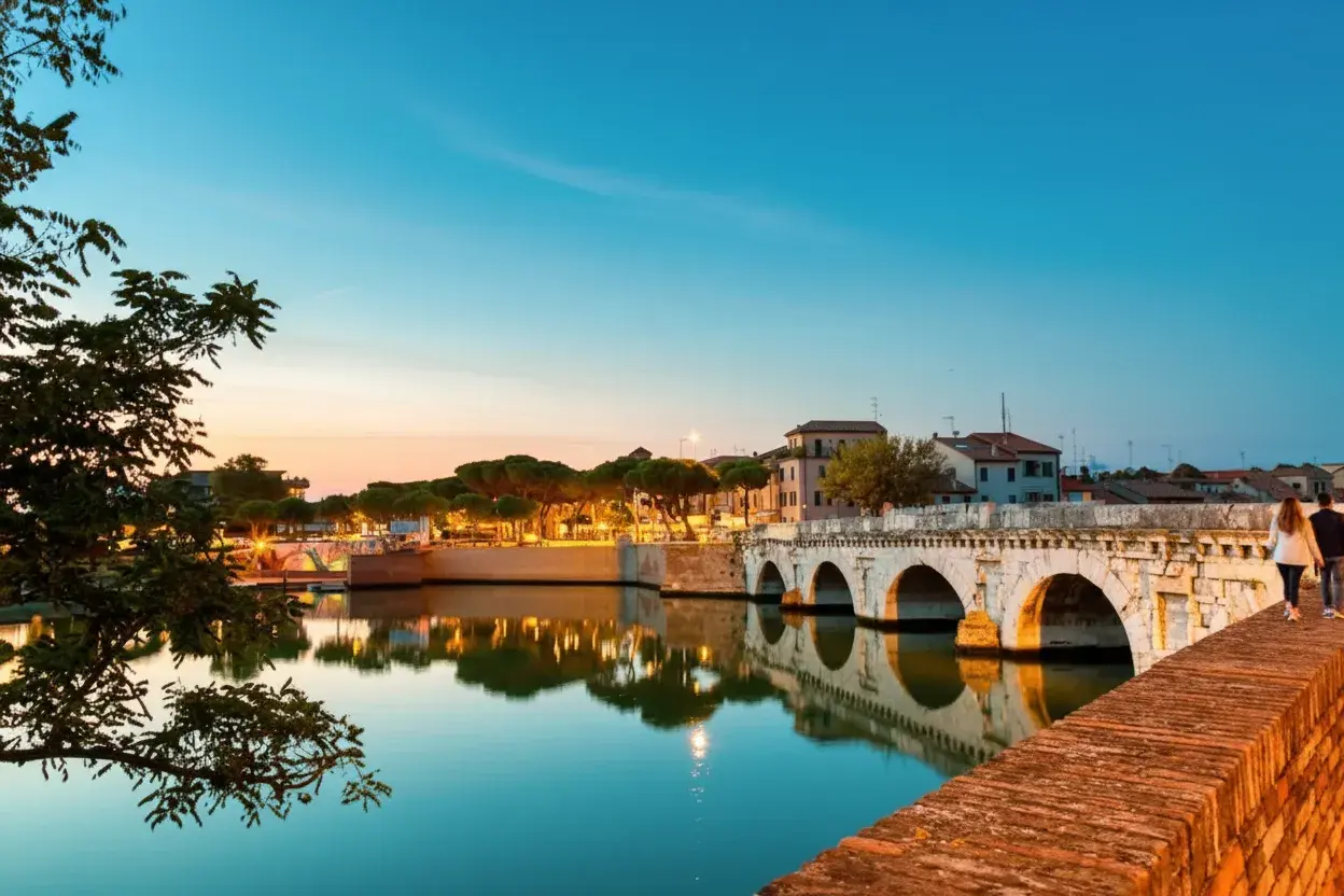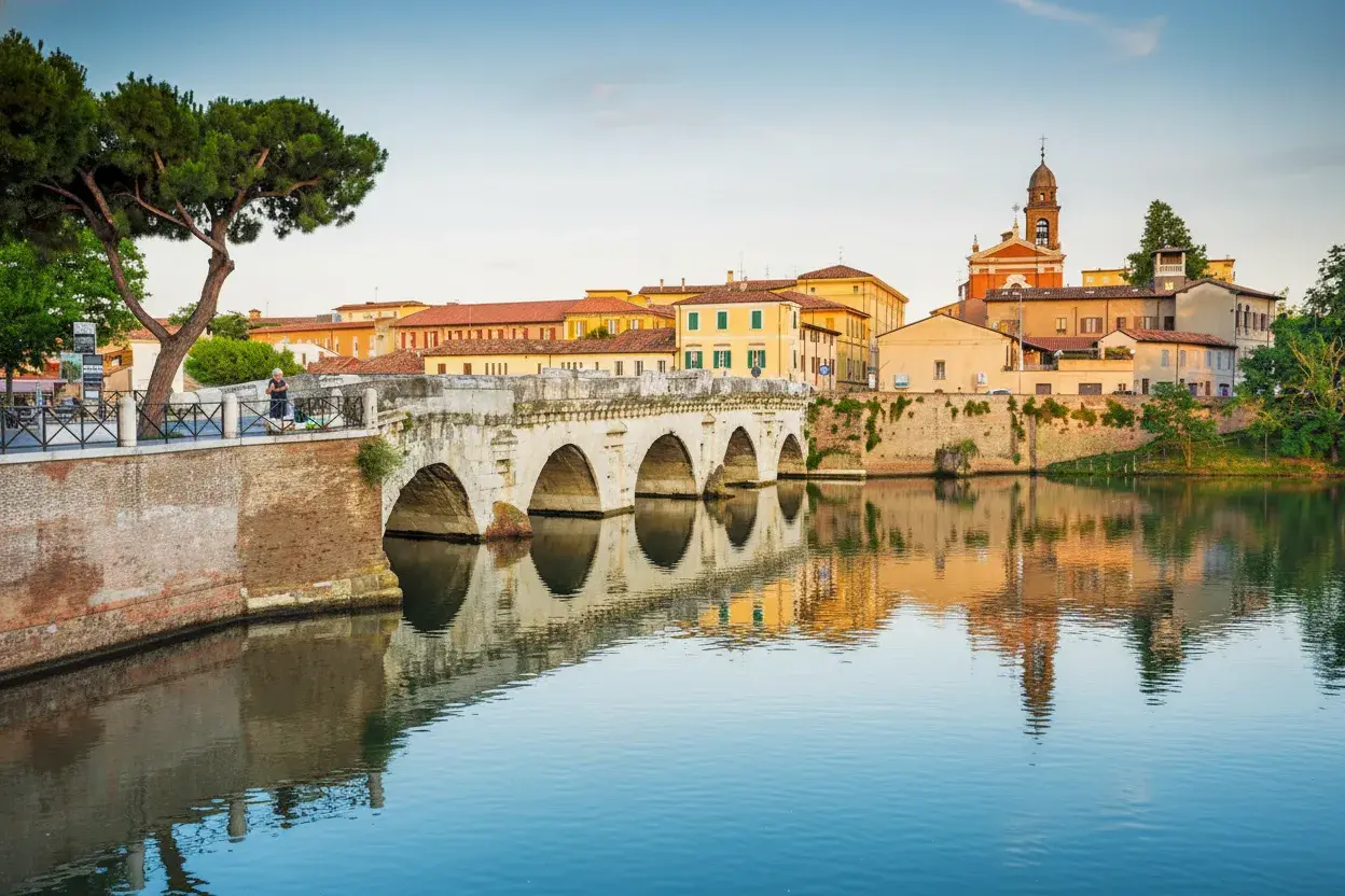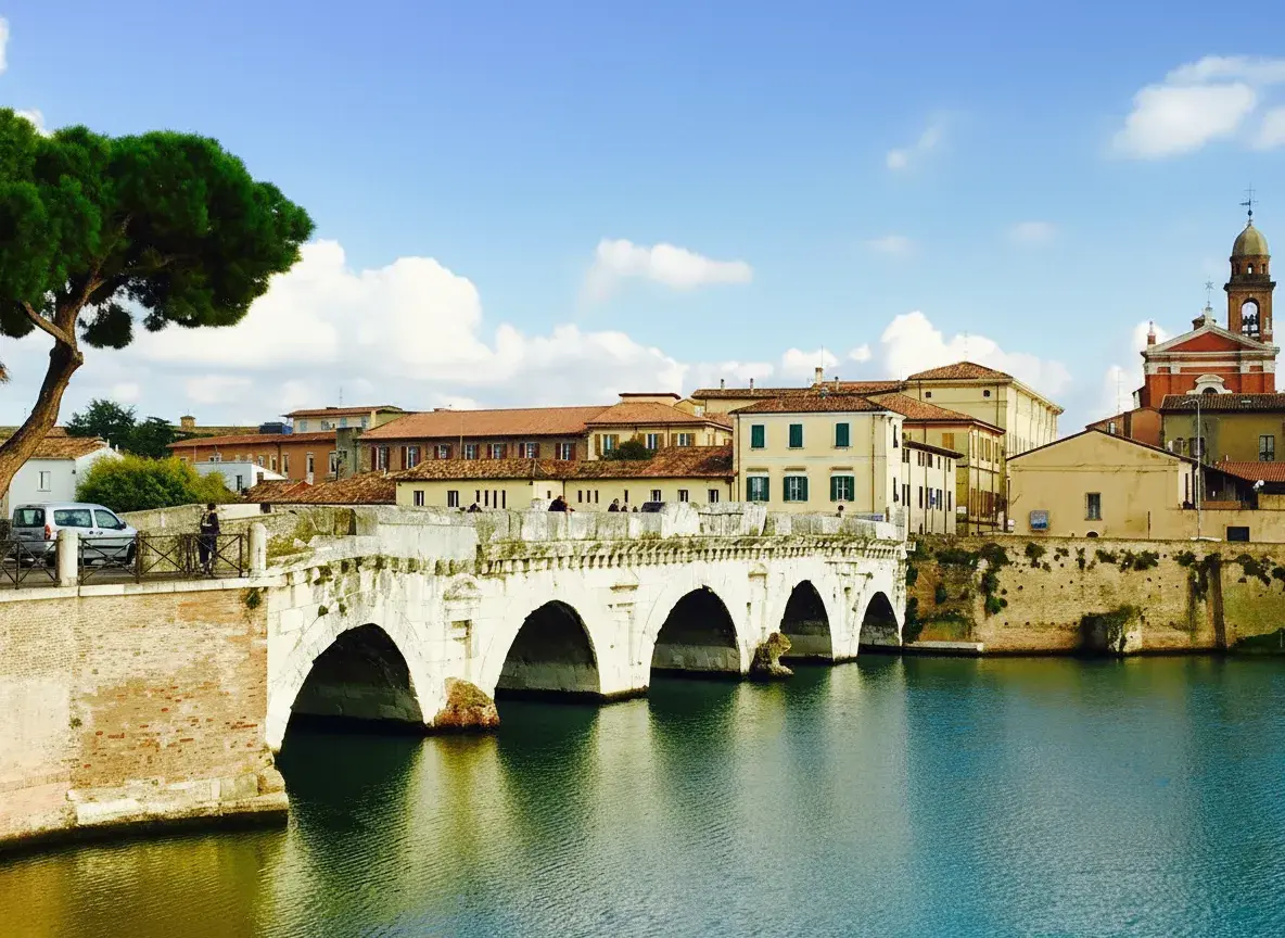 The Tiberius Bridge, built during the reigns of Emperor Augustus and Tiberius, is one of Rimini’s most iconic Roman monuments. Constructed from white Istrian stone in the 1st century AD, the bridge still carries traffic today, standing as a remarkable testament to Roman engineering. It connects the city center with the Borgo San Giuliano district and is surrounded by picturesque canals and colorful buildings, making it a favorite spot for photographers and history enthusiasts alike.