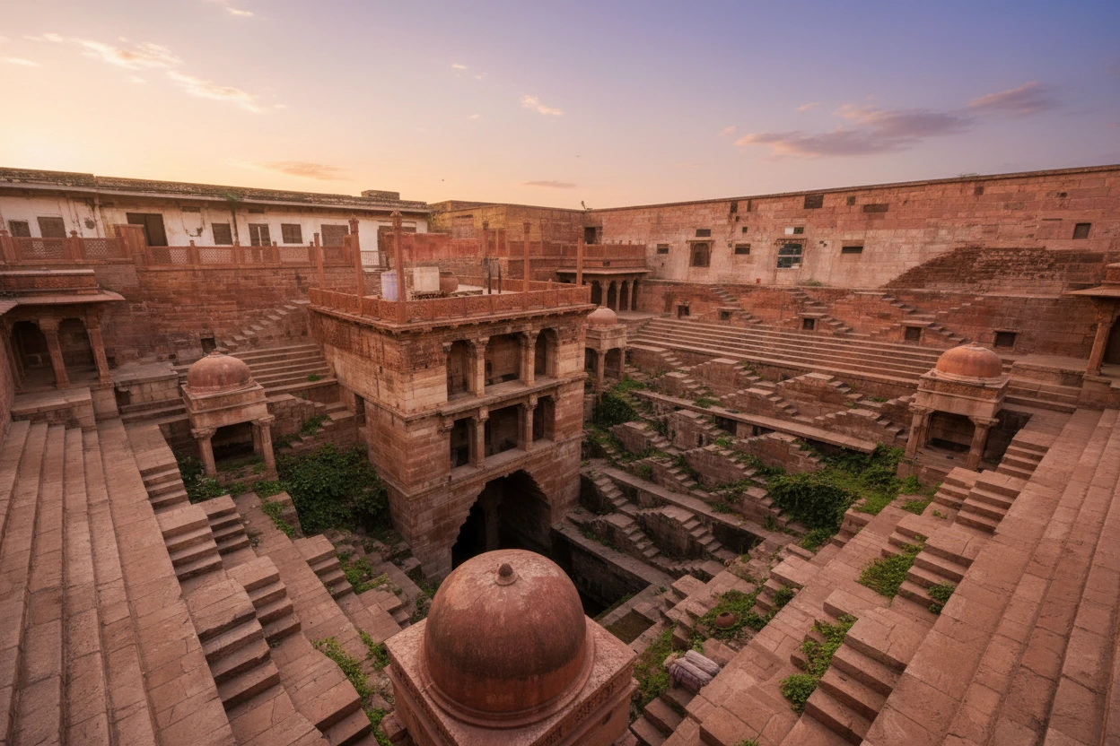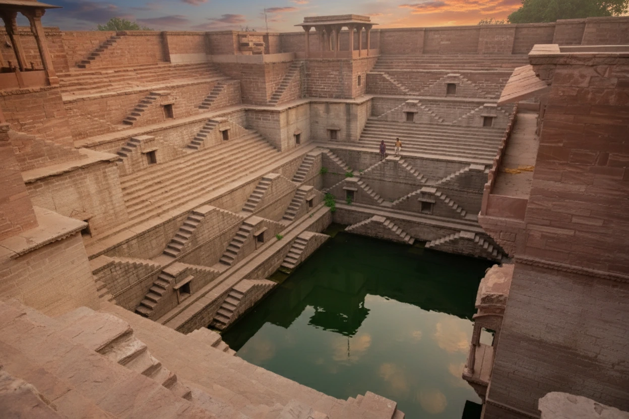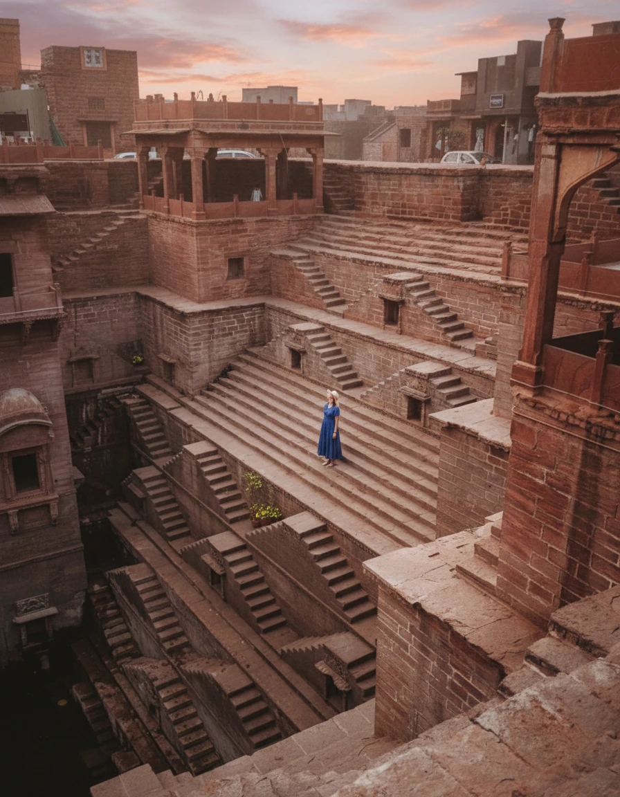 • 🏛️ Observe the unique stepwell architecture 📐 and the fine sandstone carvings. ✨