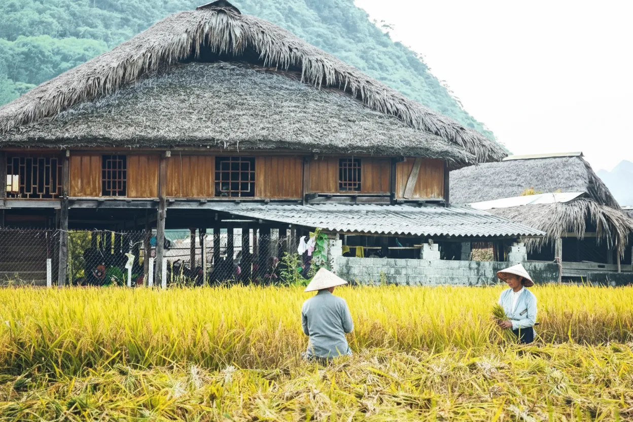 Traditional homes in the outskirts of Hà Giang City reflect local architectural styles shaped by climate and cultural traditions. These homes are commonly built using wood, stone, and natural materials. Visitors can observe stilt houses, simple courtyards, and layouts designed for family life and farming activities. The surroundings are quiet and closely connected to nature. For travelers, traditional homes offer insight into rural lifestyles and architectural heritage of northern Vietnam.