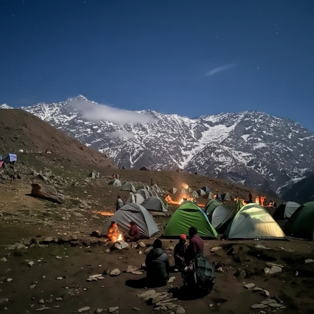 • 🏔️ Enjoy the breathtaking panoramic views from the Triund top ⛺.