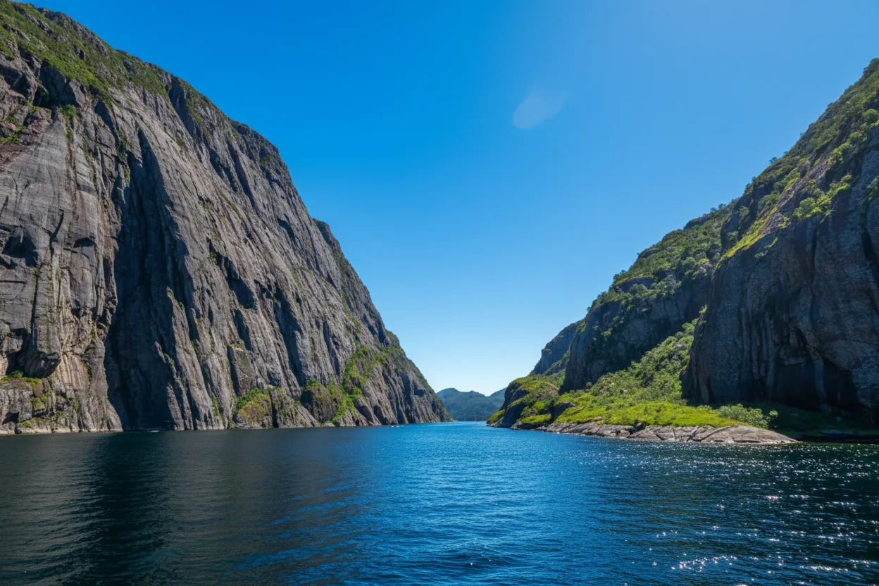 • 🚢 Cruise through the incredibly narrow fjord gap between giant cliffs 🏔️