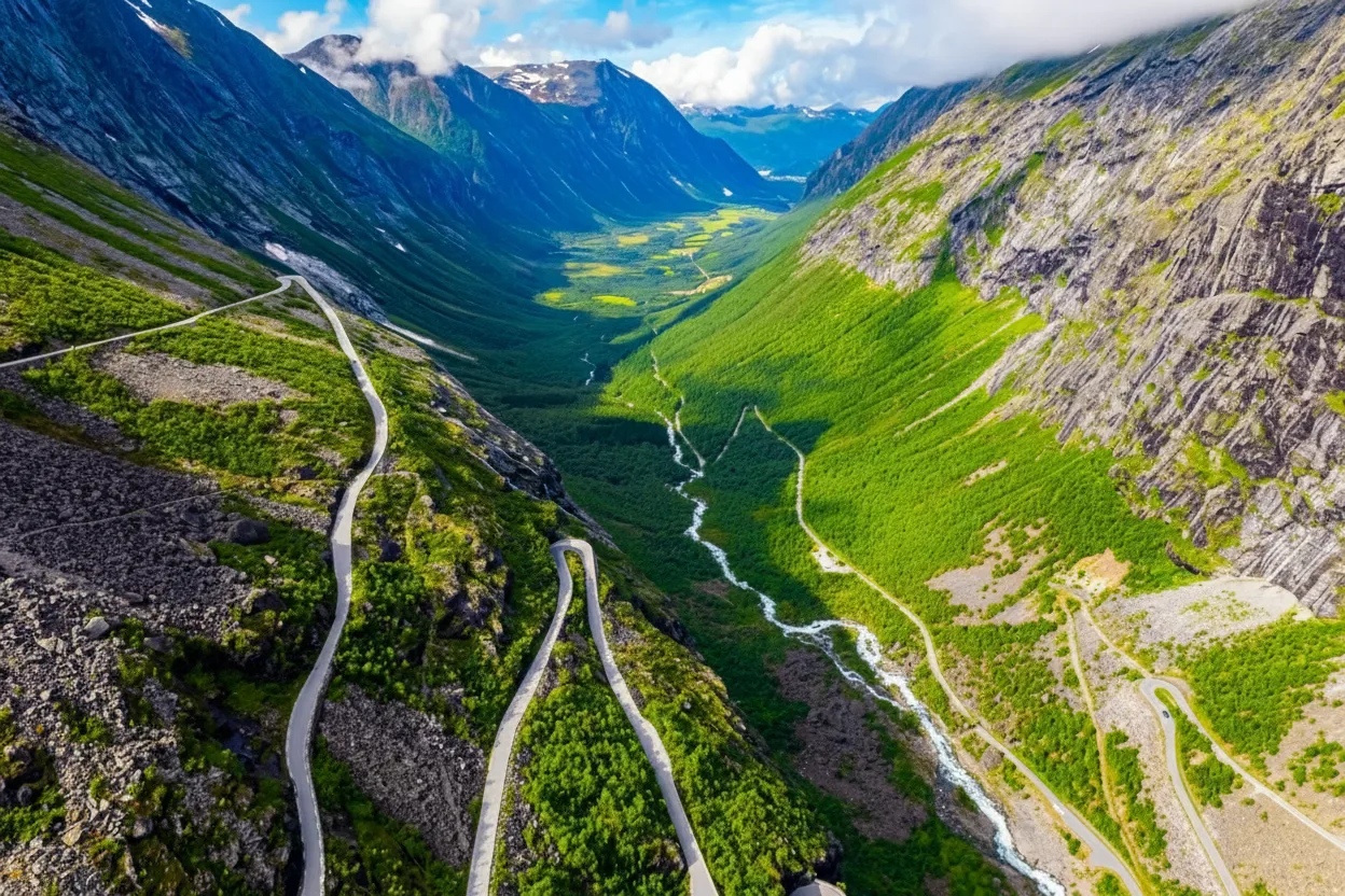 Trollstigen Mountain Road is one of Norway’s most dramatic mountain drives, featuring steep cliffs, tight hairpin bends, and breathtaking alpine scenery. This famous section of the Geiranger–Trollstigen National Tourist Route attracts visitors who want to experience an unforgettable journey through rugged landscapes and high-altitude viewpoints.