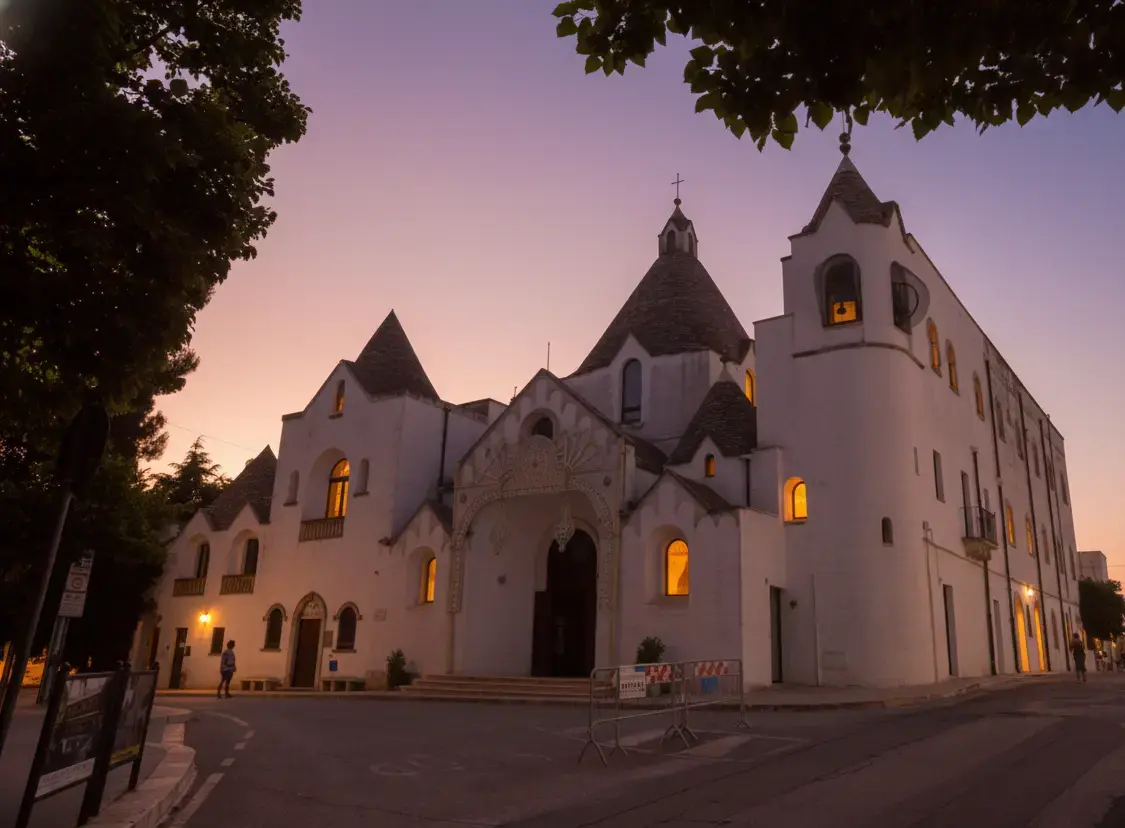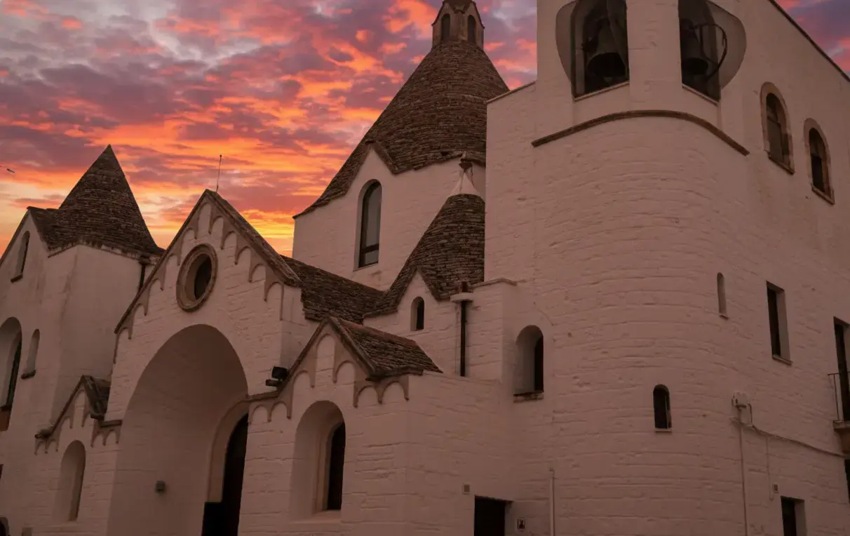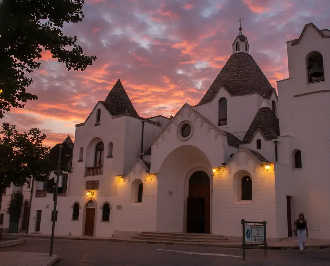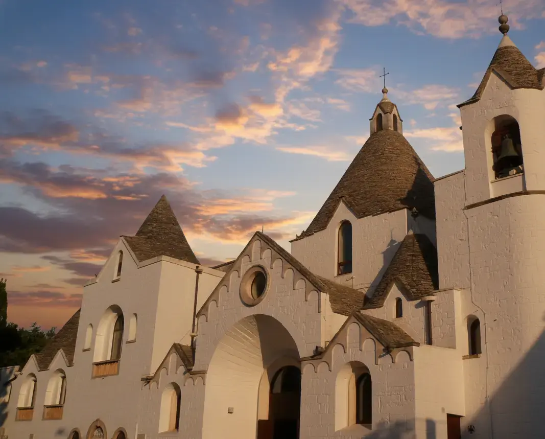 Early morning and late afternoon when the sunlight enhances the church’s stone texture and surrounding views