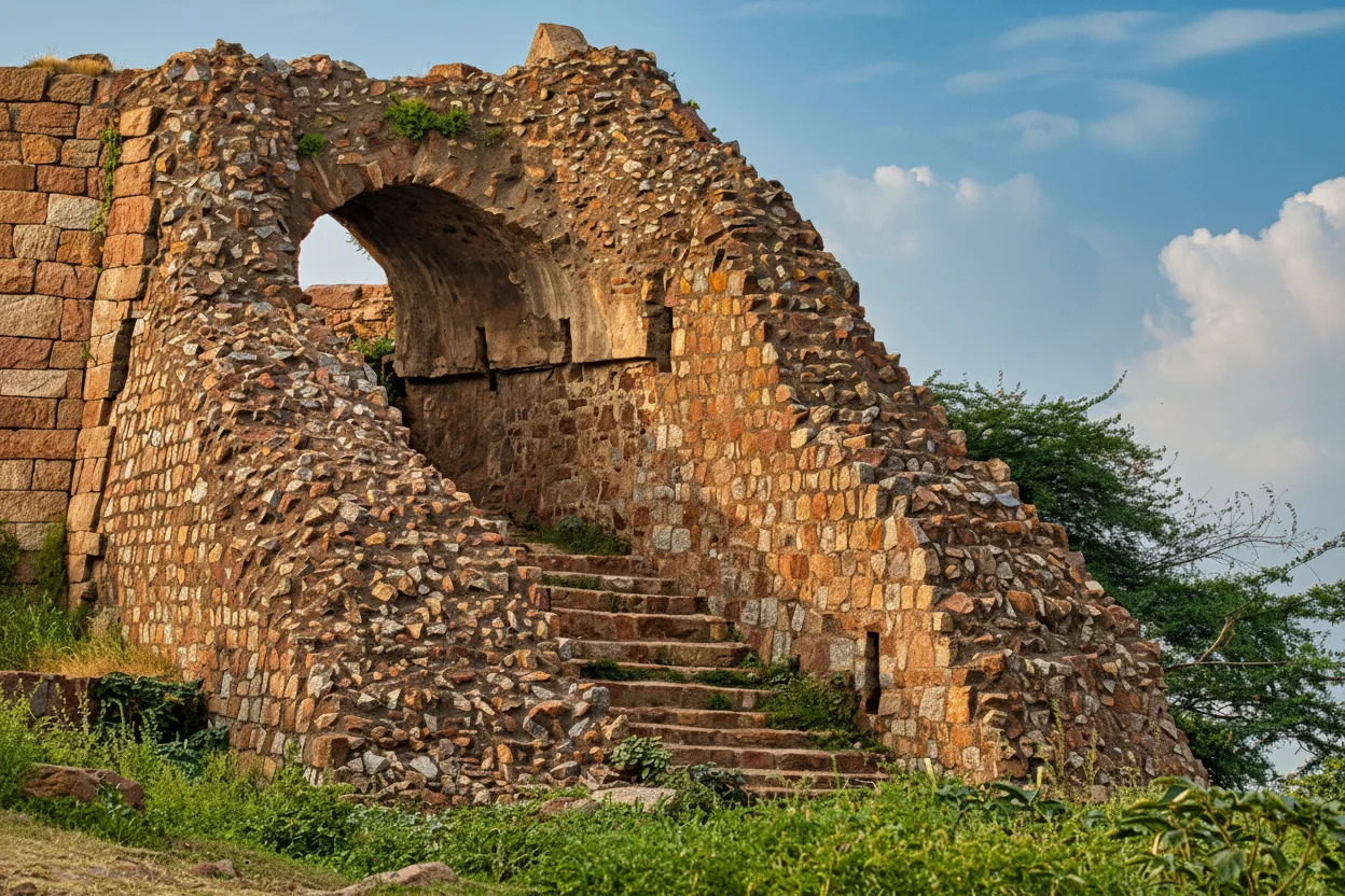 Ghiyas-ud-din Tughlaq. The fort is known for its massive stone walls, rugged layout, and