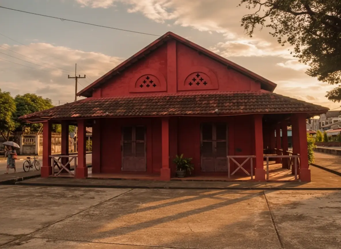 • Admire the French colonial-style 🇫🇷 red building architecture 🧱🏰✨