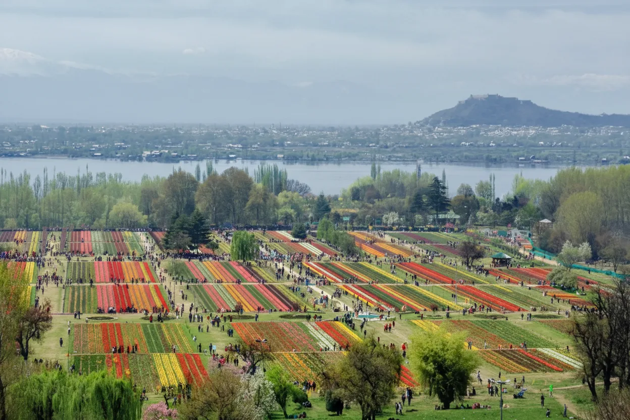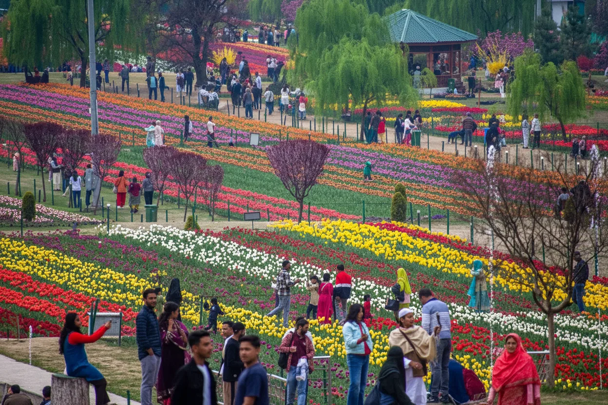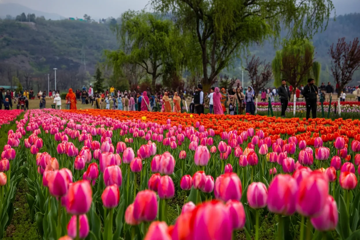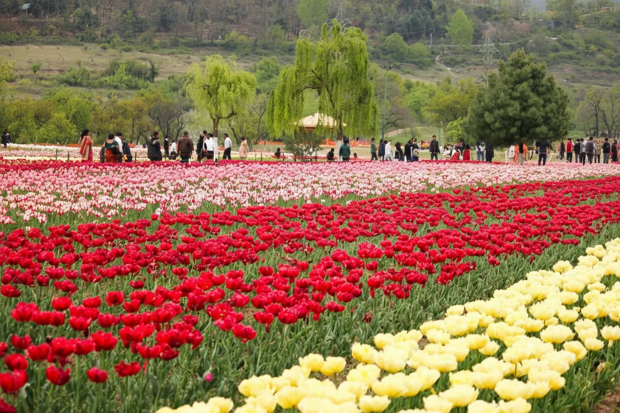 The Indira Gandhi Memorial Tulip Garden is Asia’s largest tulip garden, located at the foothills of the Zabarwan range overlooking Dal Lake in Srinagar, Jammu and Kashmir. The garden comes alive during spring with millions of colorful tulips arranged in neat terraces, attracting visitors from around the world. For travelers, the Tulip Garden offers a short seasonal experience filled with vibrant colors, fresh mountain air, and scenic views of Dal Lake and surrounding hills.