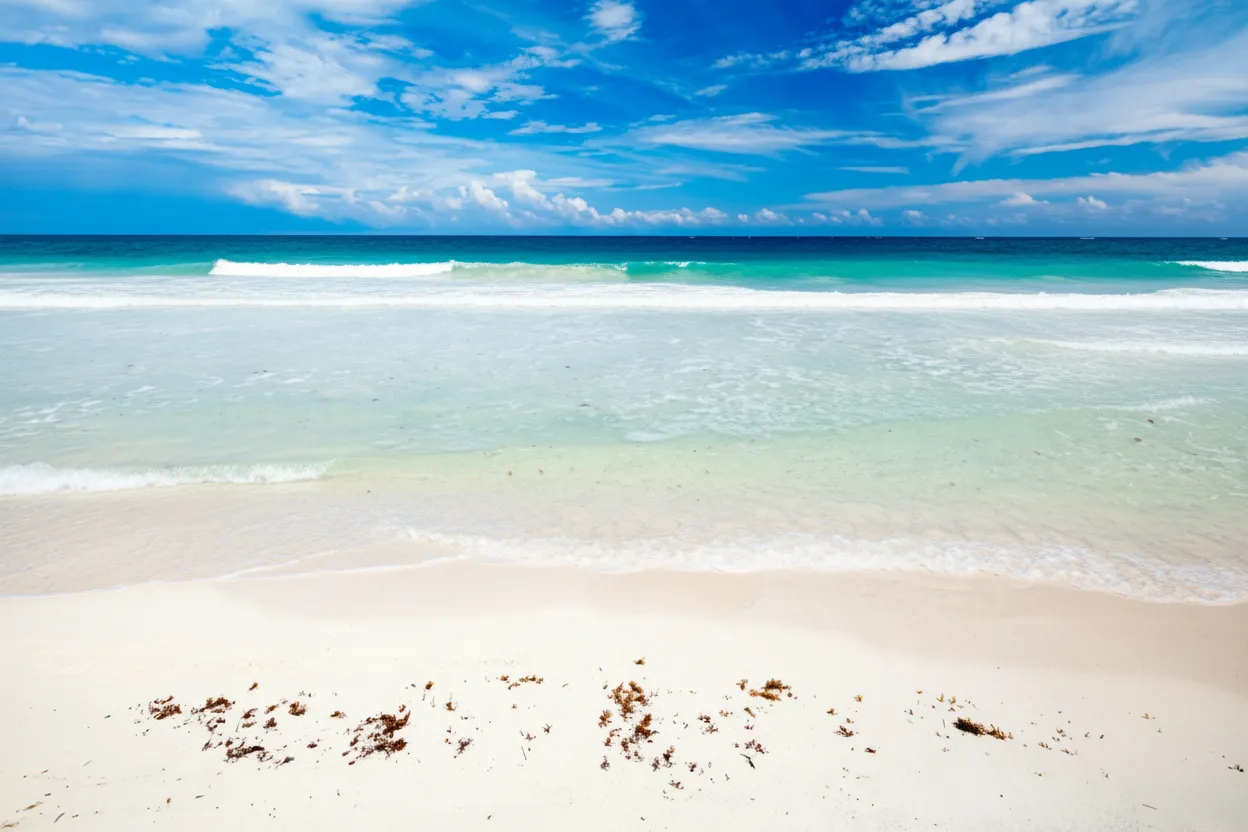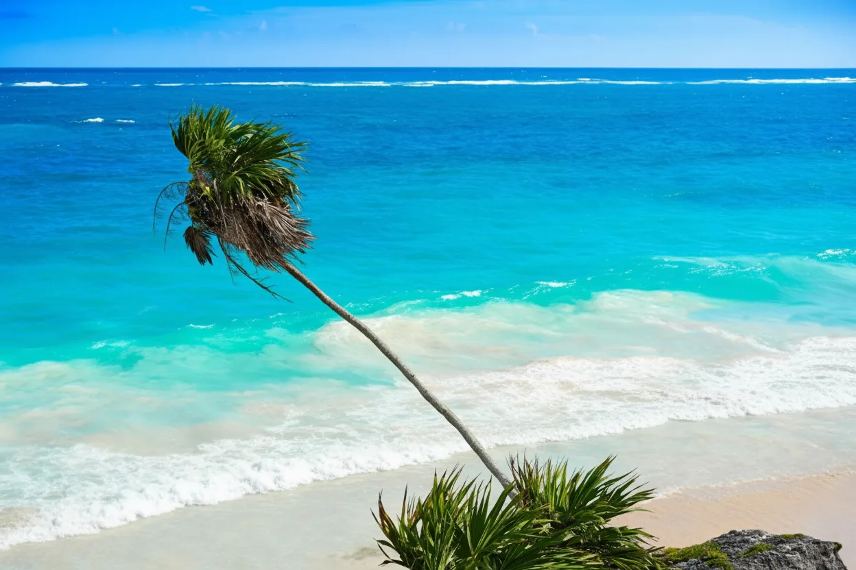 Tulum Beach is renowned for its pristine white sand, clear turquoise waters, and relaxed
