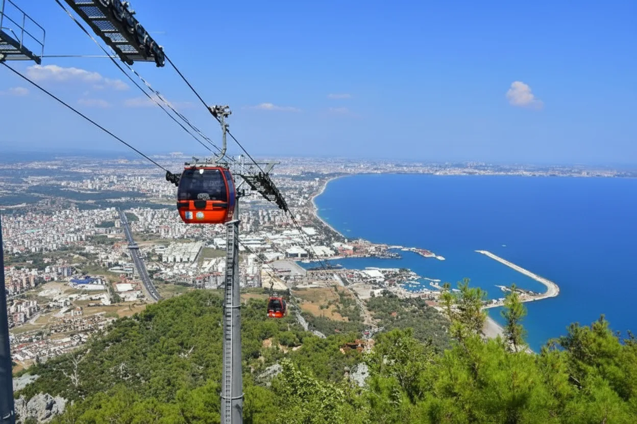 Tunektepe Cable Car offers a scenic ride from the coastal area of Antalya up to Tunektepe Hill, providing wide panoramic views of the Mediterranean Sea, Konyaalti coastline, and surrounding mountains. It is a relaxed experience suitable for all ages.