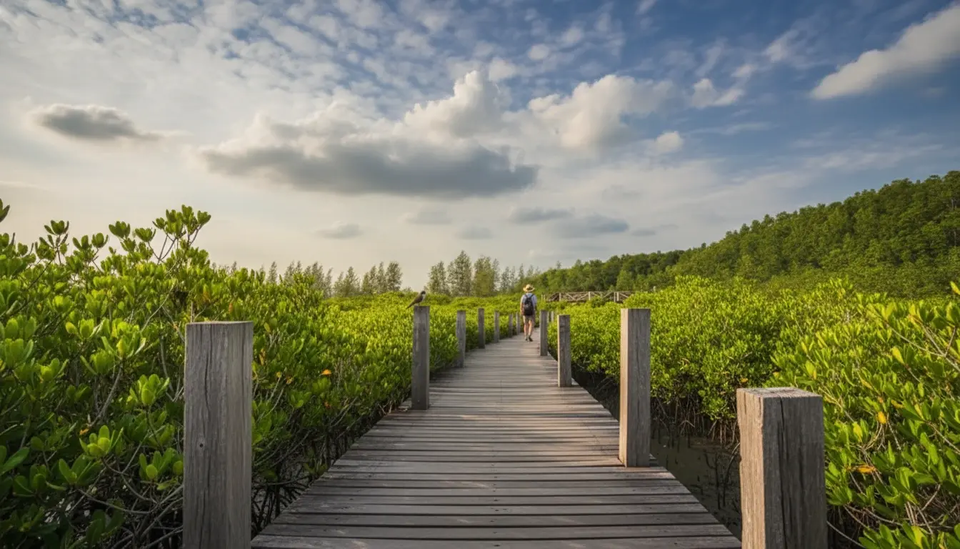 • 7:00 AM – Arrive 🧭 at Tung Prong Thong Mangrove Forest 🌳💨