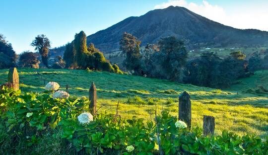 surrounded by lush green hills, coffee farms, and rivers. Known for its peaceful atmosphere, friendly