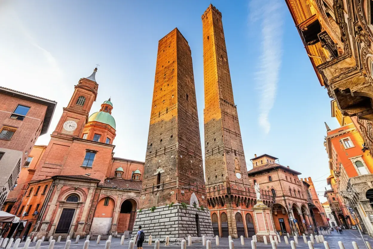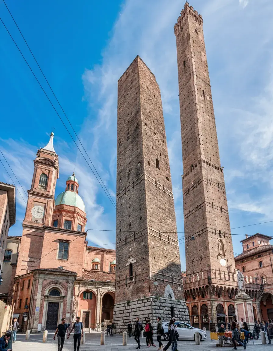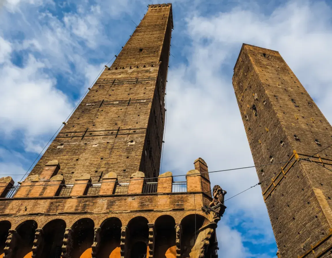 The Two Towers, known as Due Torri, are Bologna’s most famous landmarks and a proud symbol of the city. Standing tall since the 12th century, the Asinelli and Garisenda towers dominate Bologna’s skyline, representing its medieval past and architectural brilliance. Climbing the towers offers breathtaking panoramic views of the city’s red rooftops.