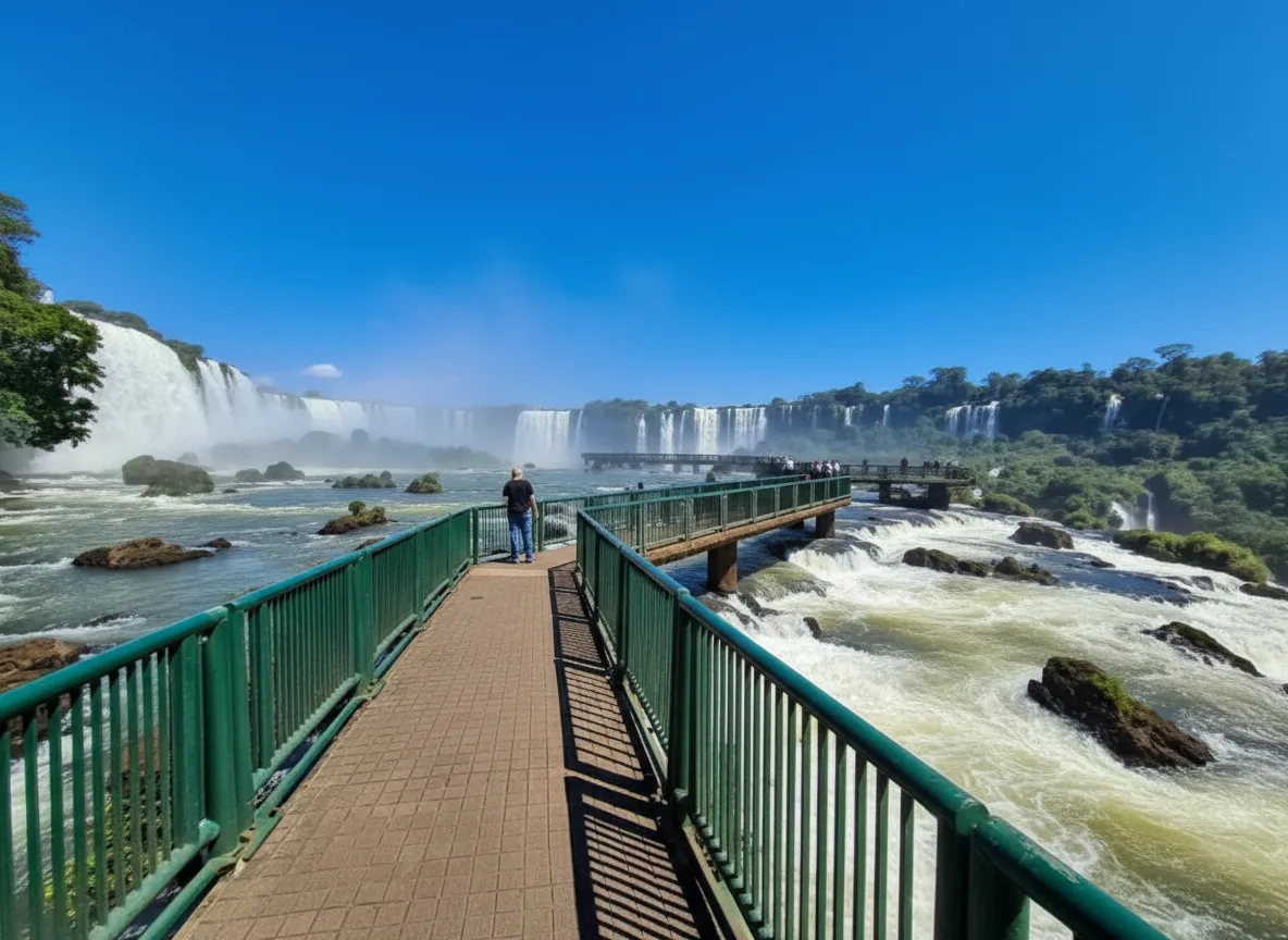 The Upper Circuit walkways at Iguazú Falls provide elevated paths that allow visitors to view the waterfalls from above. These walkways offer wide perspectives of the cascades and surrounding rainforest, making them ideal for relaxed sightseeing. Walking along the Upper Circuit gives travelers a clear sense of the size and layout of Iguazú Falls. The paths are well-maintained and suitable for visitors who prefer easy walking routes with scenic views.