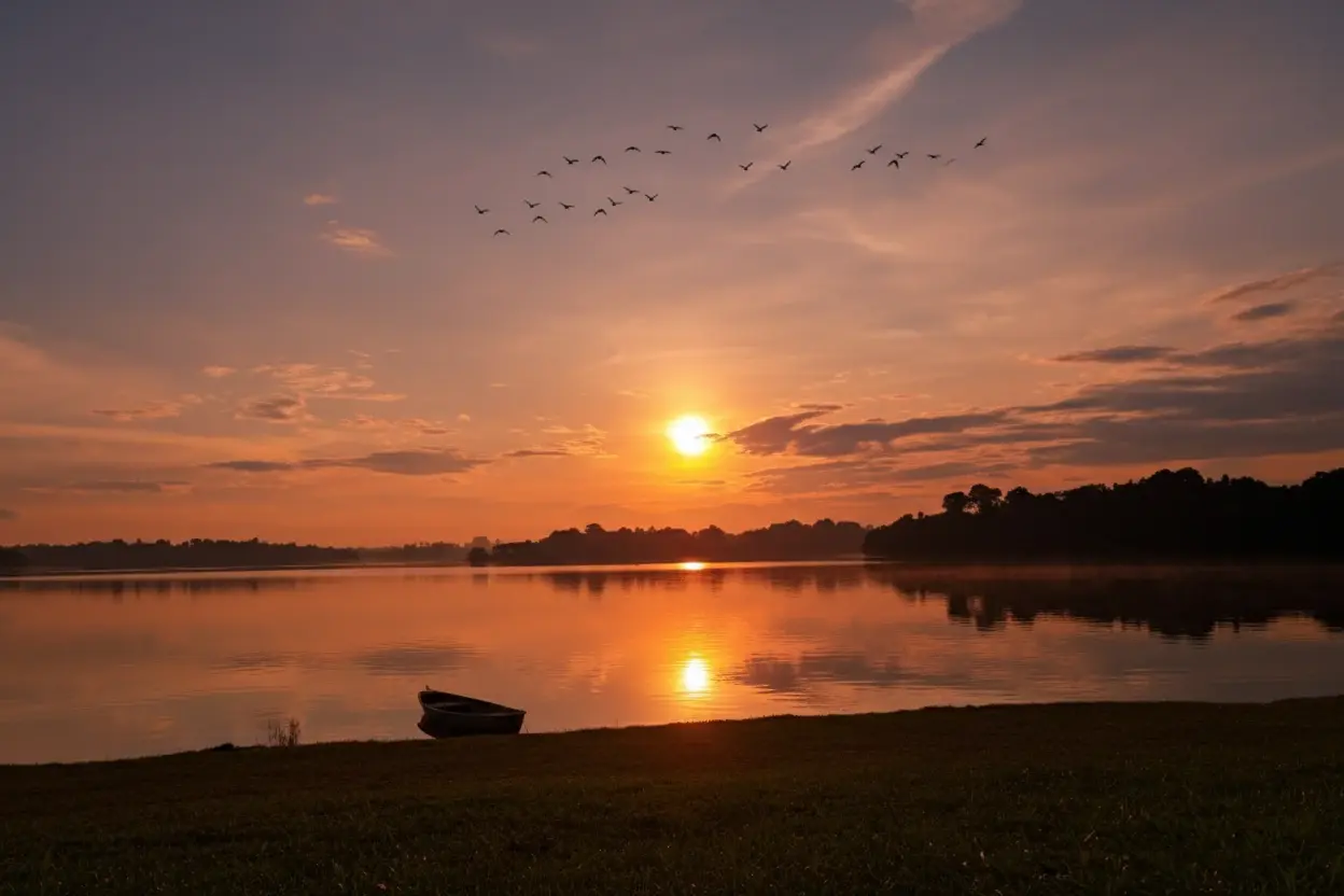 • Capture beautiful sunrise 🌅 and sunset 🌄 photos 📸 over the still waters 🧡✨🖼️