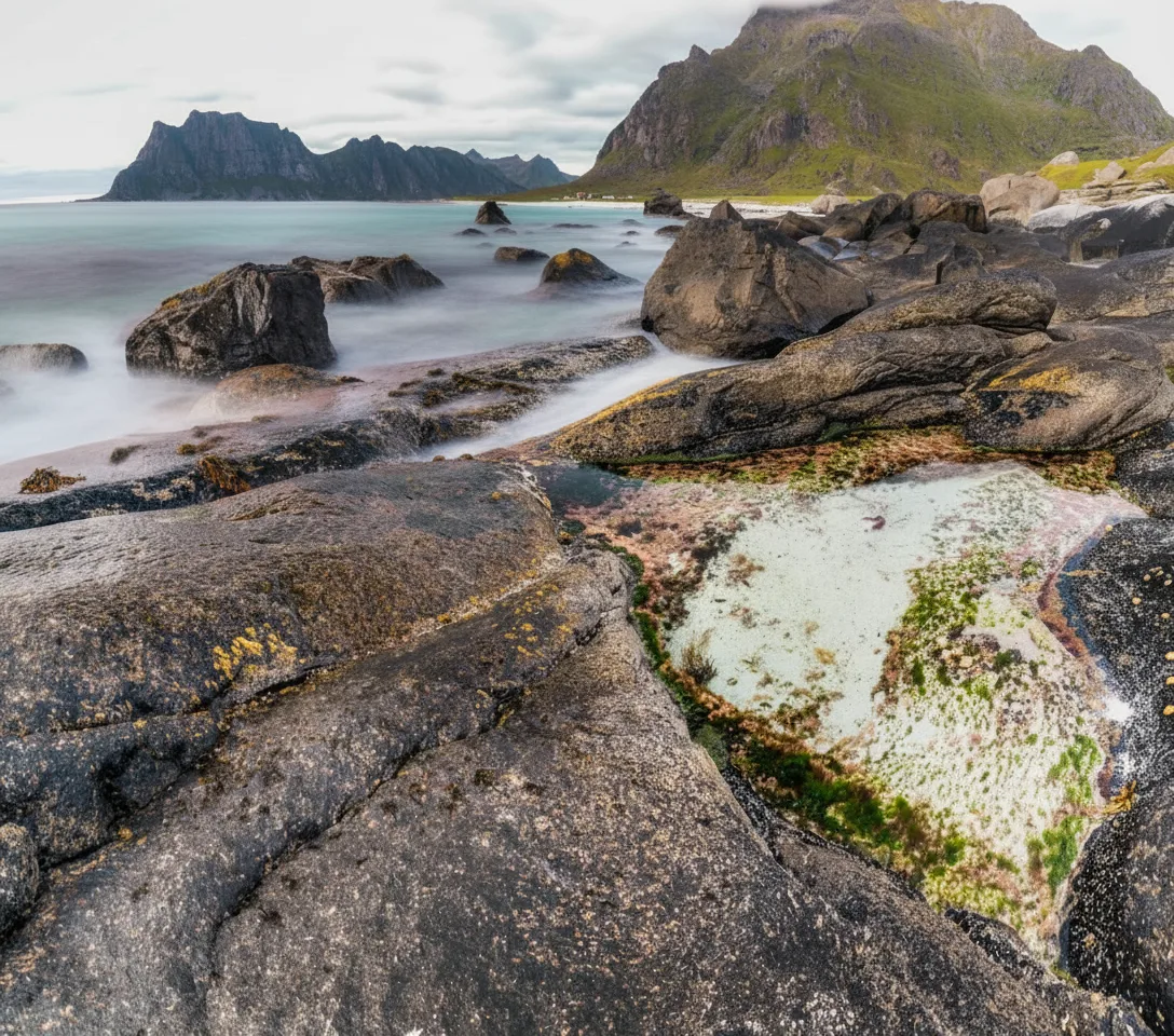 Uttakleiv Beach is one of the most scenic coastal locations in the Lofoten Islands,