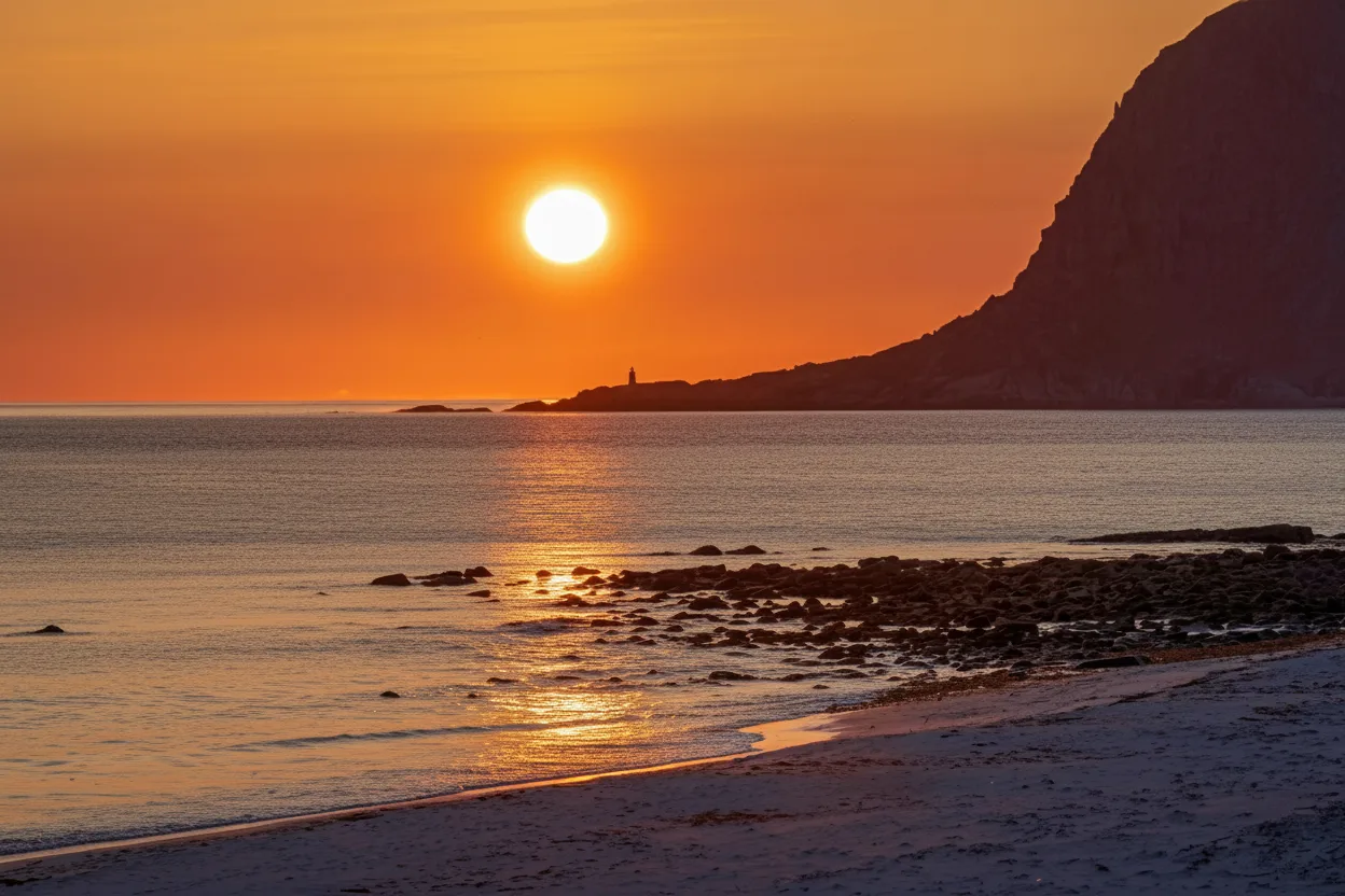 For travelers, Uttakleiv Beach offers a peaceful yet dramatic Arctic beach experience,